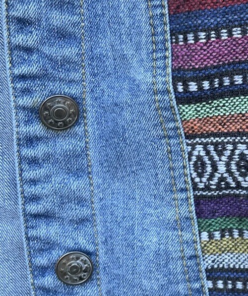 Vintage Bongo Jean Vest 90s/y2k Aztec tapestry multicolored tribal boho denim