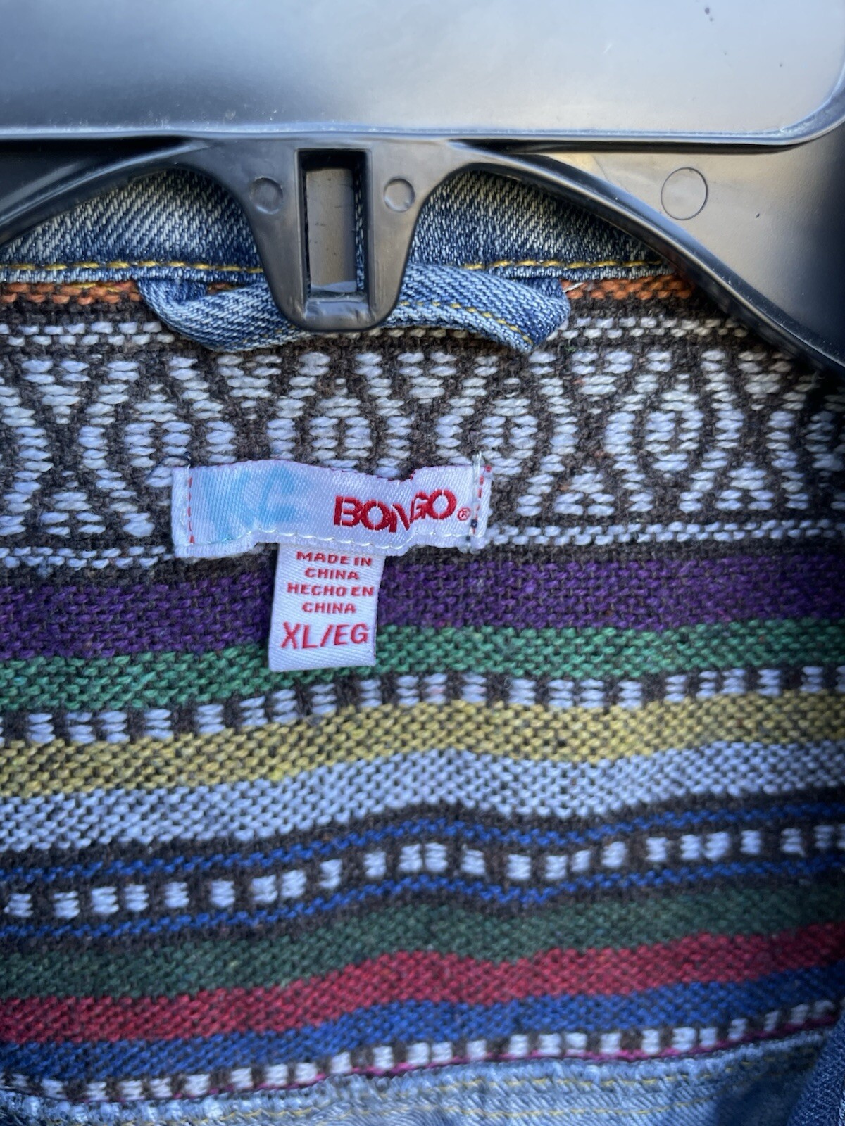 как выглядит Vintage Bongo Jean Vest 90s/y2k Aztec tapestry multicolored tribal boho denim фото