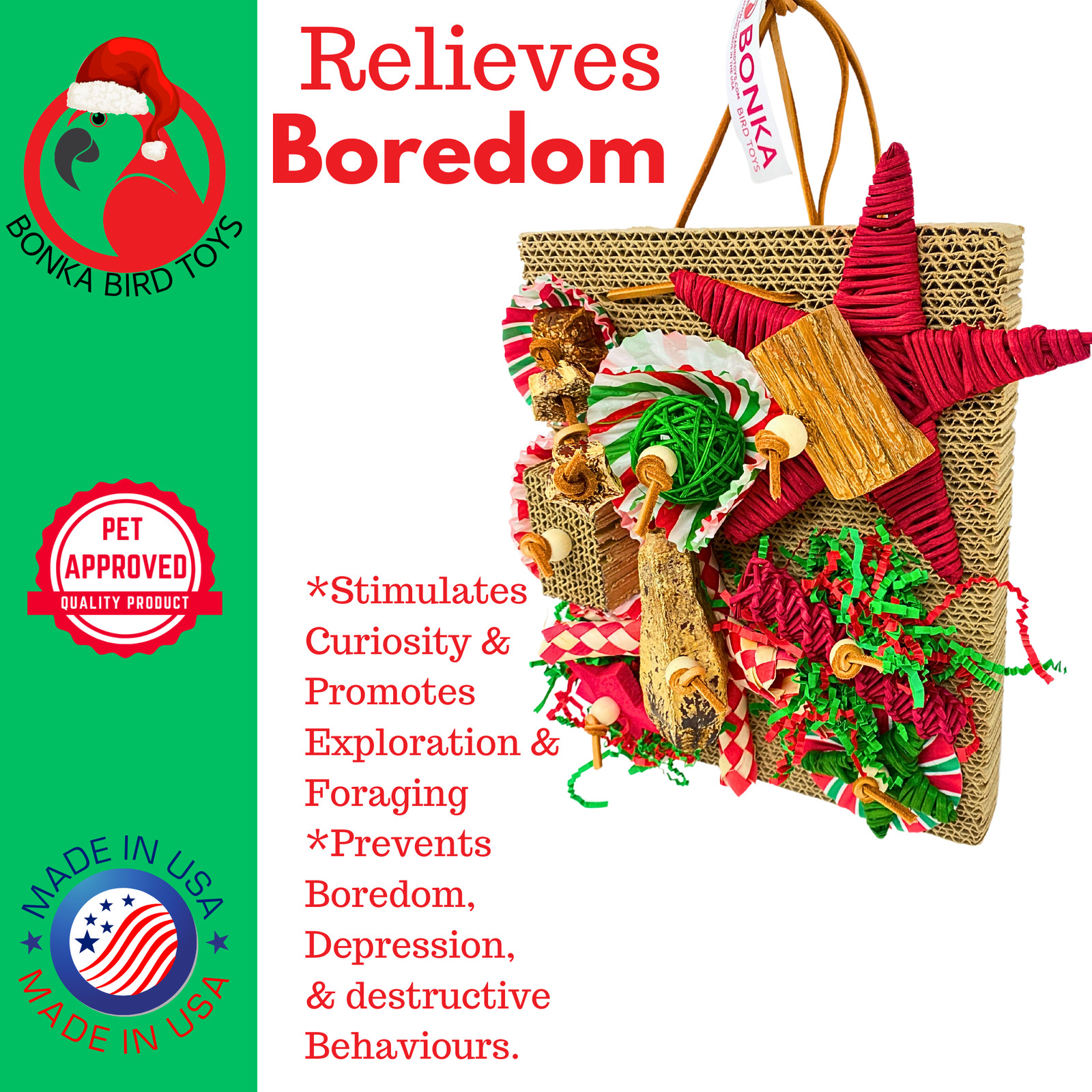 Bonka Bird Toys 2742 Christmas Merry Munch Board Festive Chew Parrot Cage Toy