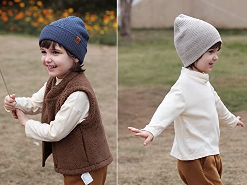 2PCS Baby Beanie Soft Toddler Beanie Warm 0-24 Months Beige cowboy Blue