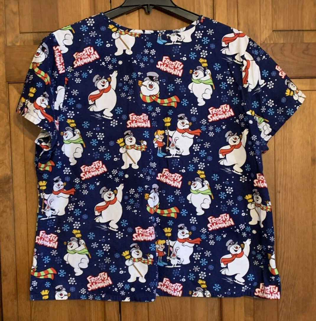 Frosty The Snowman Blue Graphic Print Scrub Top - see measurements