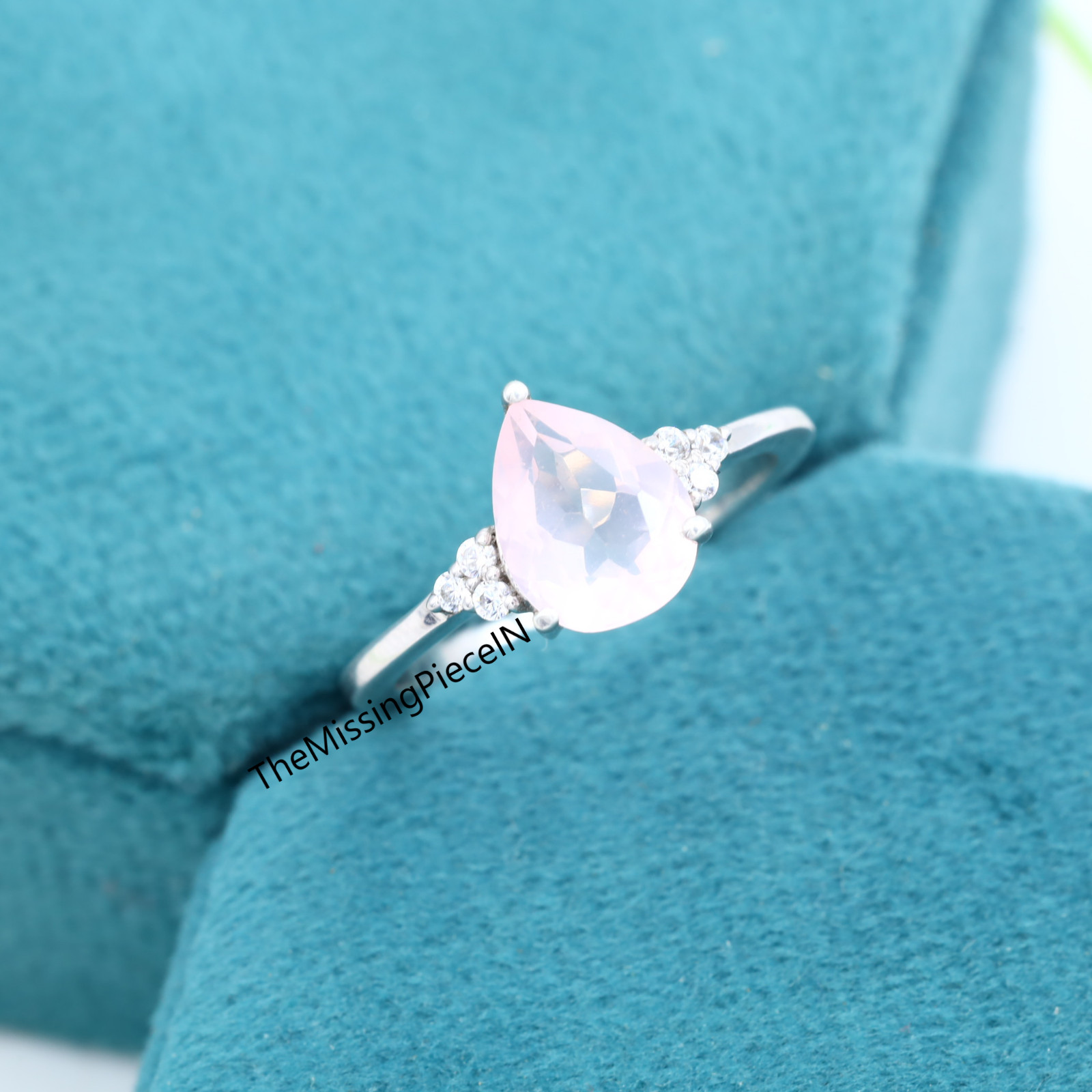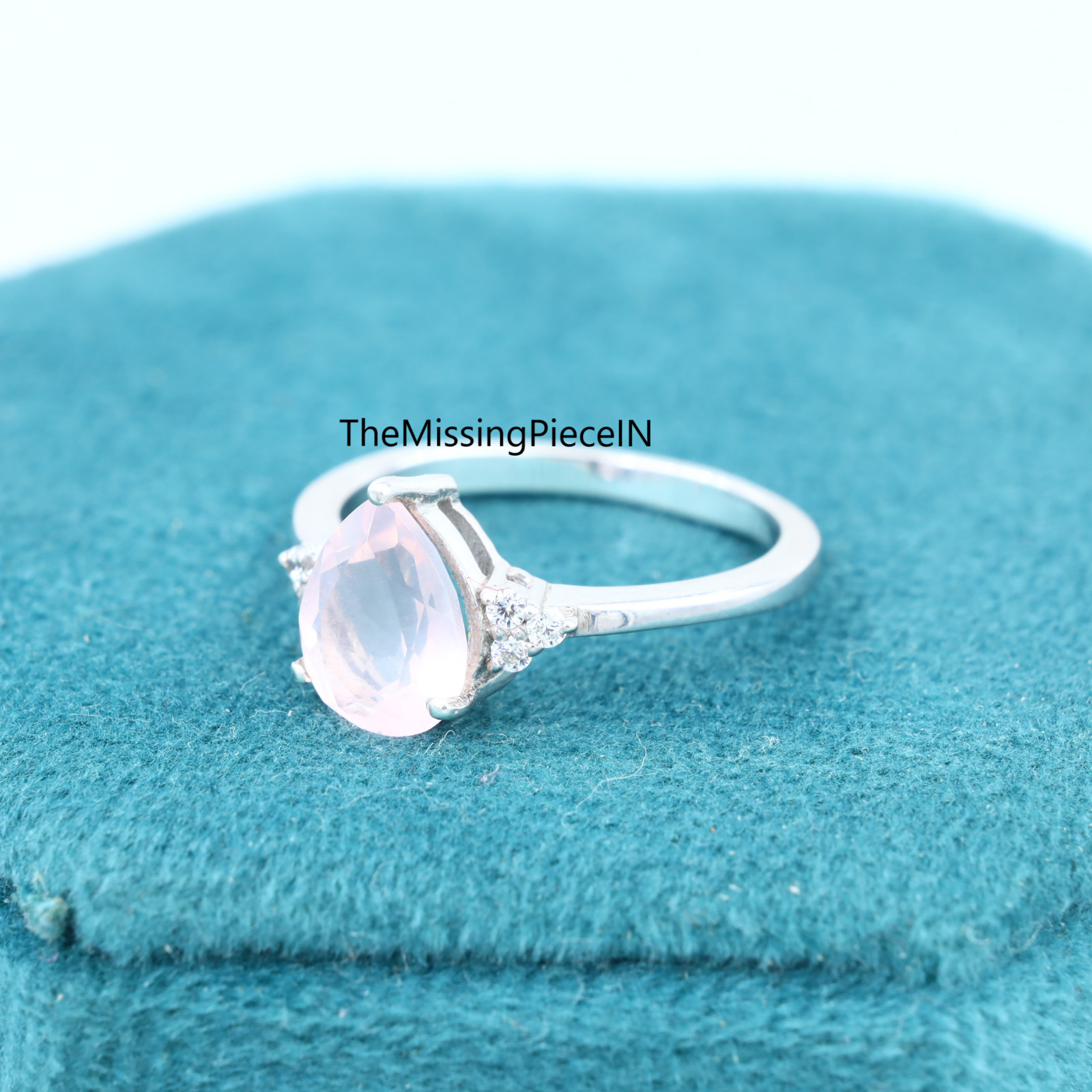 Natural Rose Quartz Ring, Pear Wedding Engagement Ring, Women's Ring Jewelry