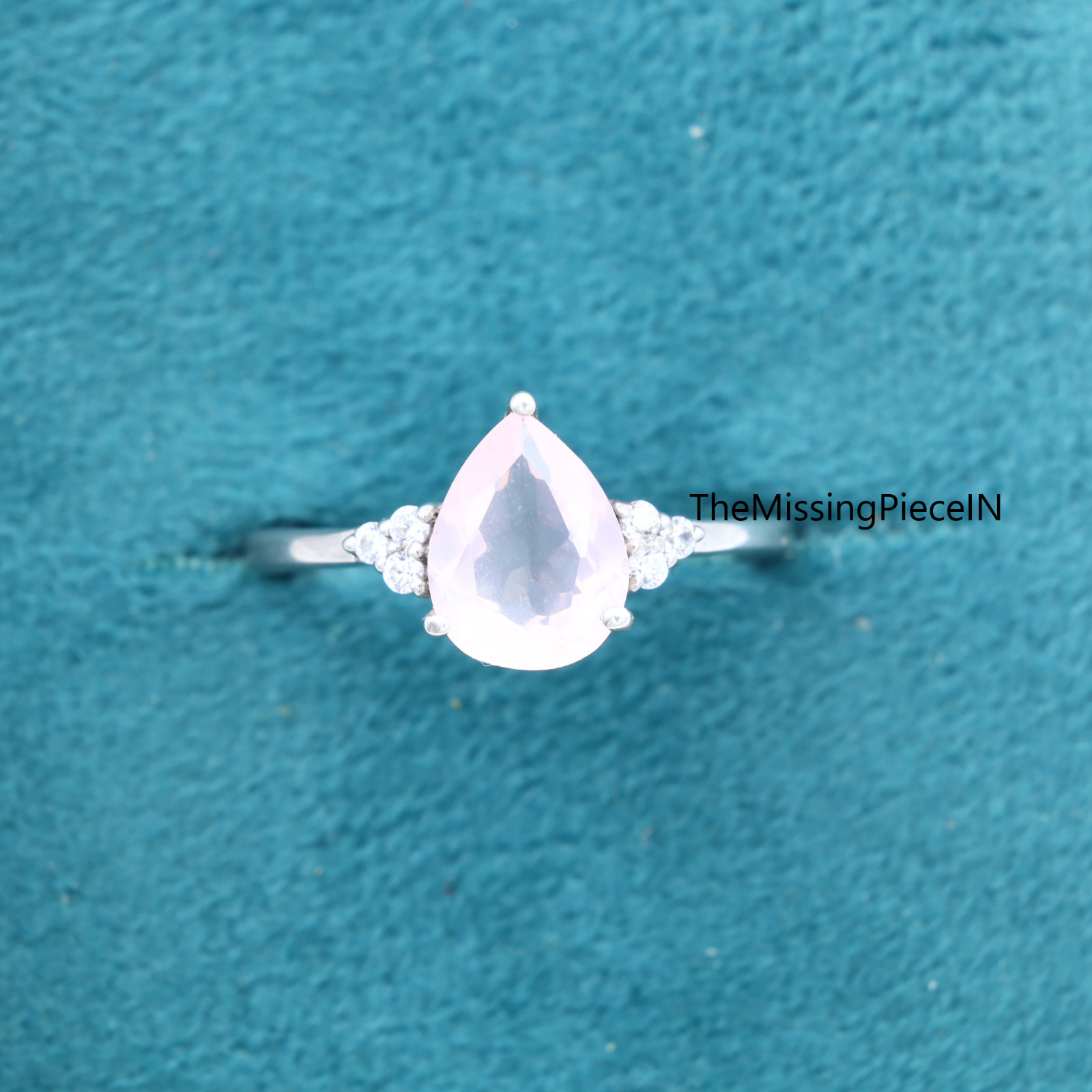 как выглядит Natural Rose Quartz Ring, Pear Wedding Engagement Ring, Women