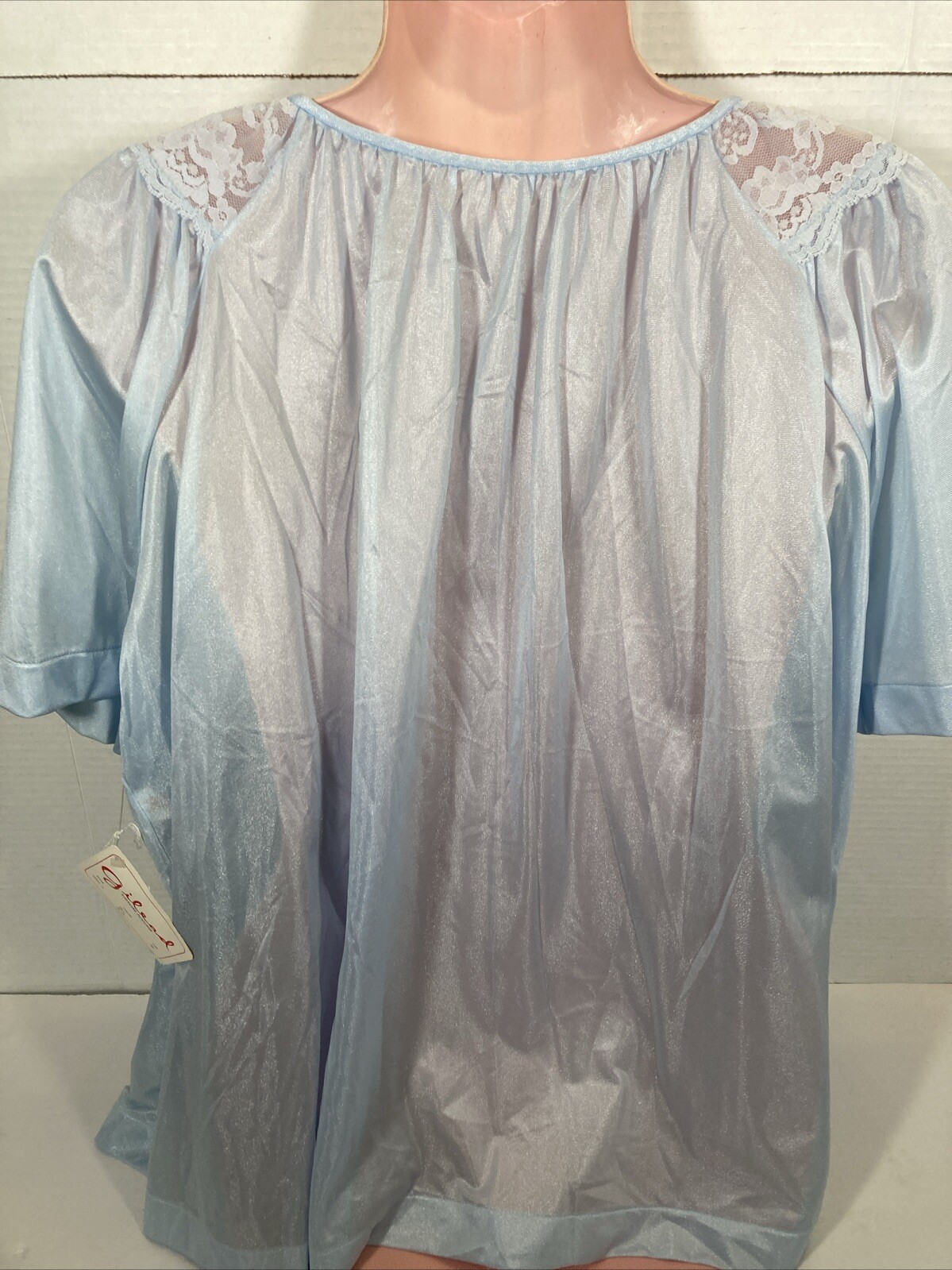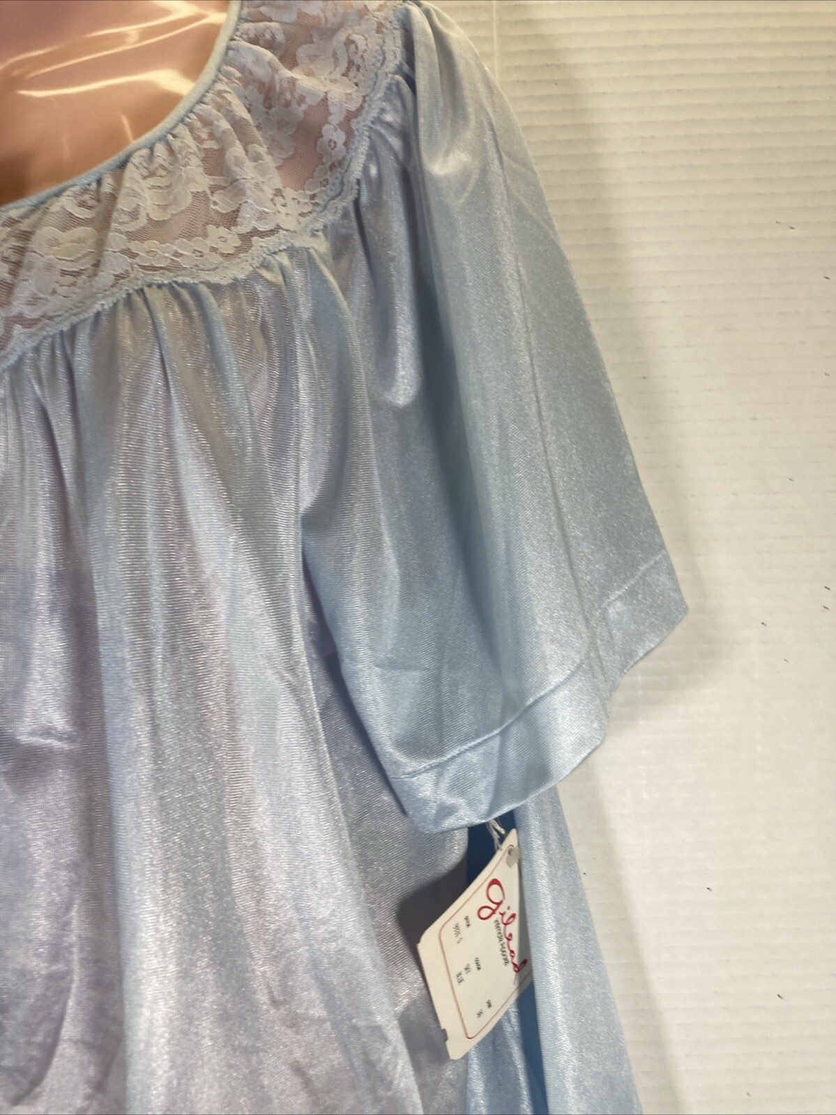 как выглядит Vintage Women s Bed Jacket Color Baby Blue Flutter Sleeve Lace Trim фото