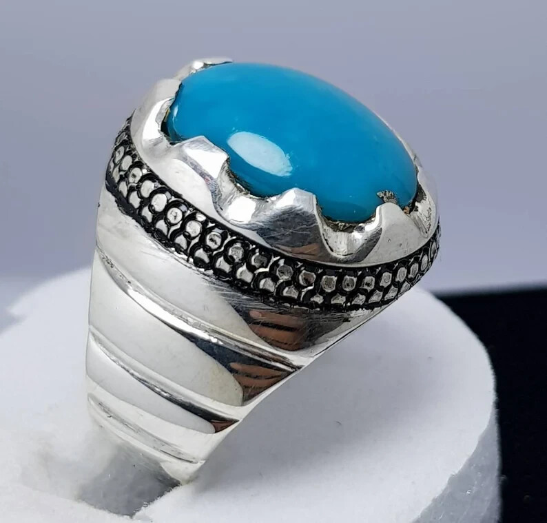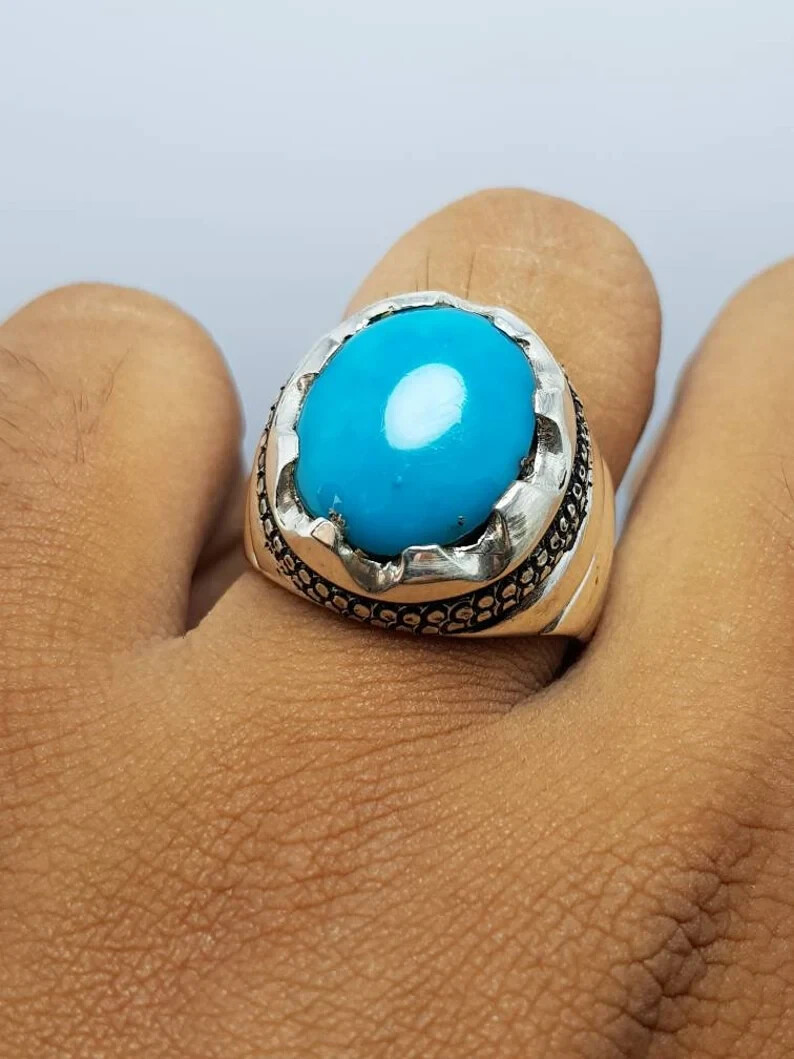 как выглядит Dark Blue Nishapuri Feroza Ring Real Turquoise Gemstone Elegant HandmadeRing фото