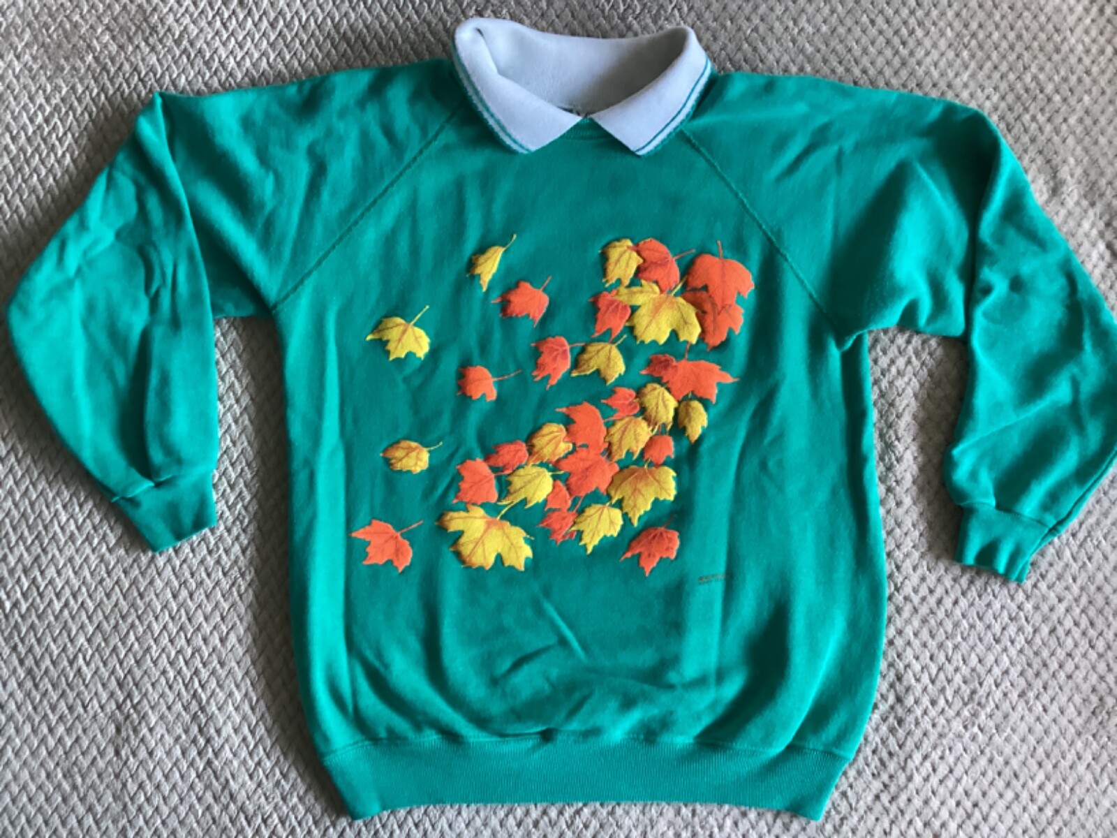 Vintage Morning Sun Women's Textured Falling Leaves Collared Sweatshirt Medium