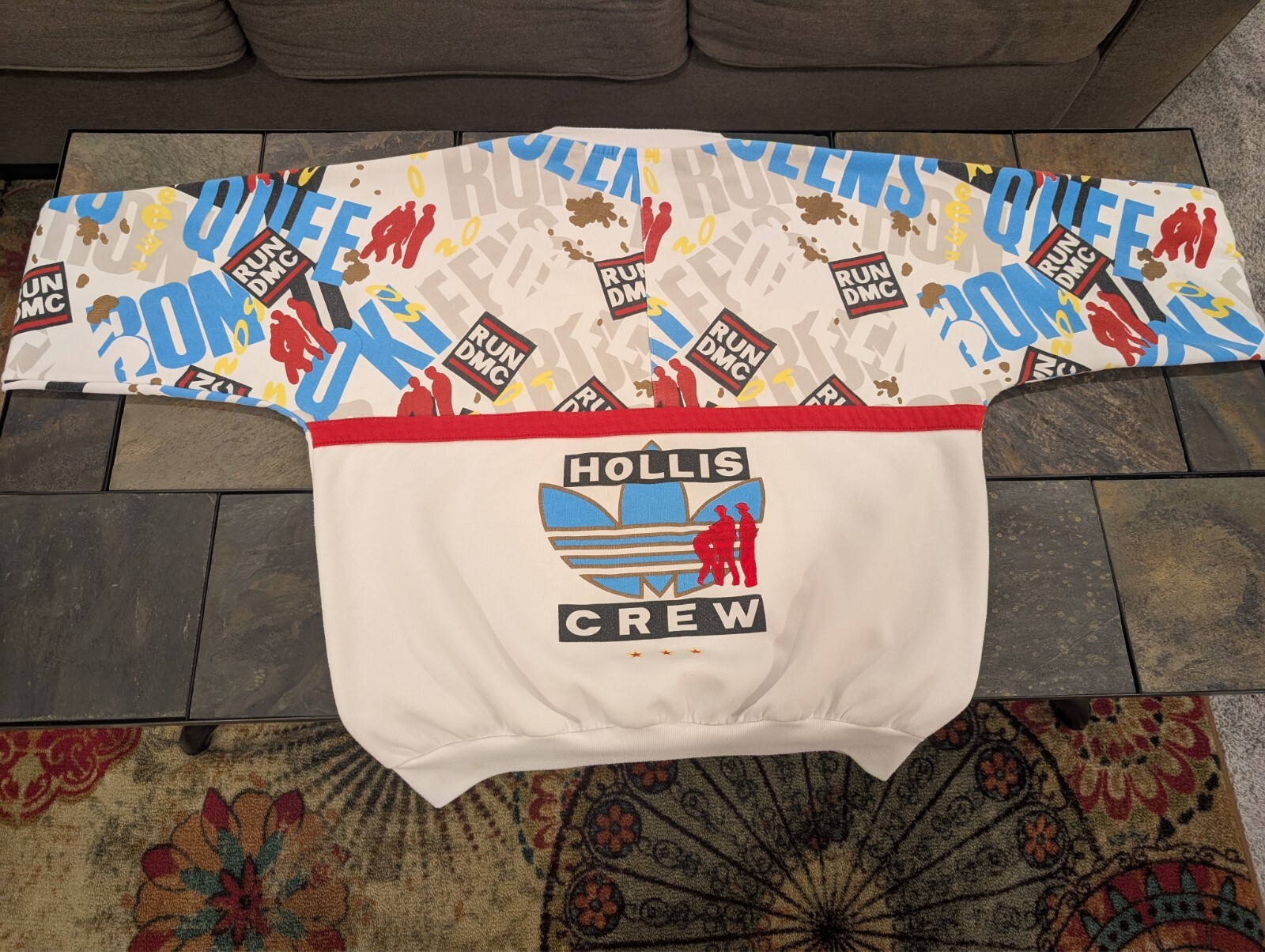 REAL Vintage 80's RUN DMC Adidas Sweatshirt SIZE L Hollis Crew RARE EXCELLENT