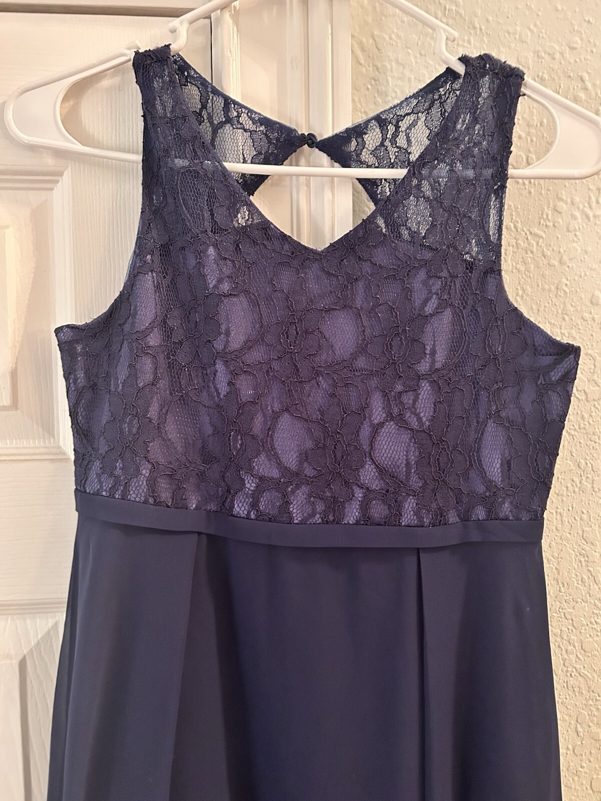как выглядит Navy Blue Formal Gown Long Floor Length with Mesh Style Bodice Girls Size 12 фото