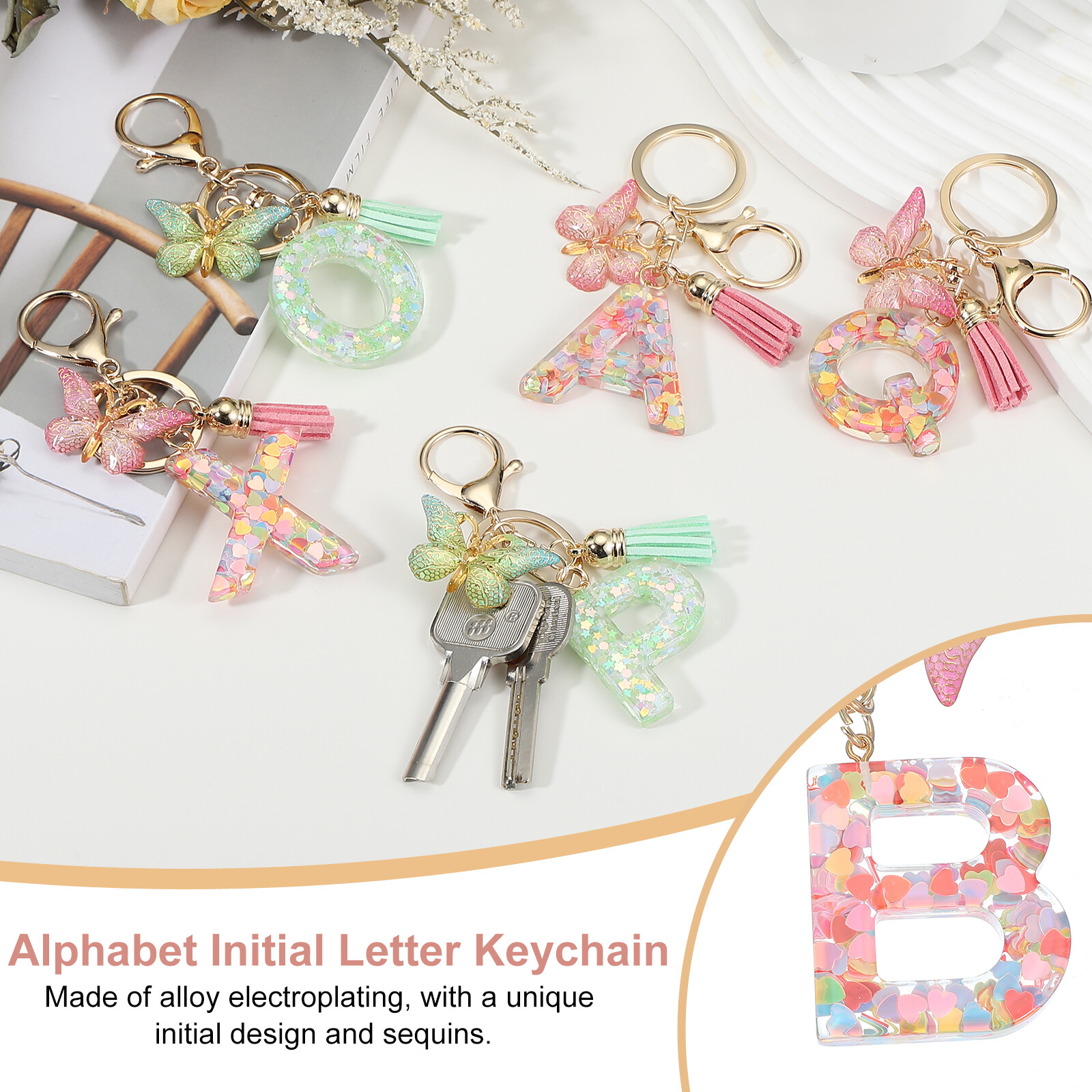 как выглядит Alphabet Initial Letter Keychain Cute Charm with Tassel Butterfly Letter B Pink фото