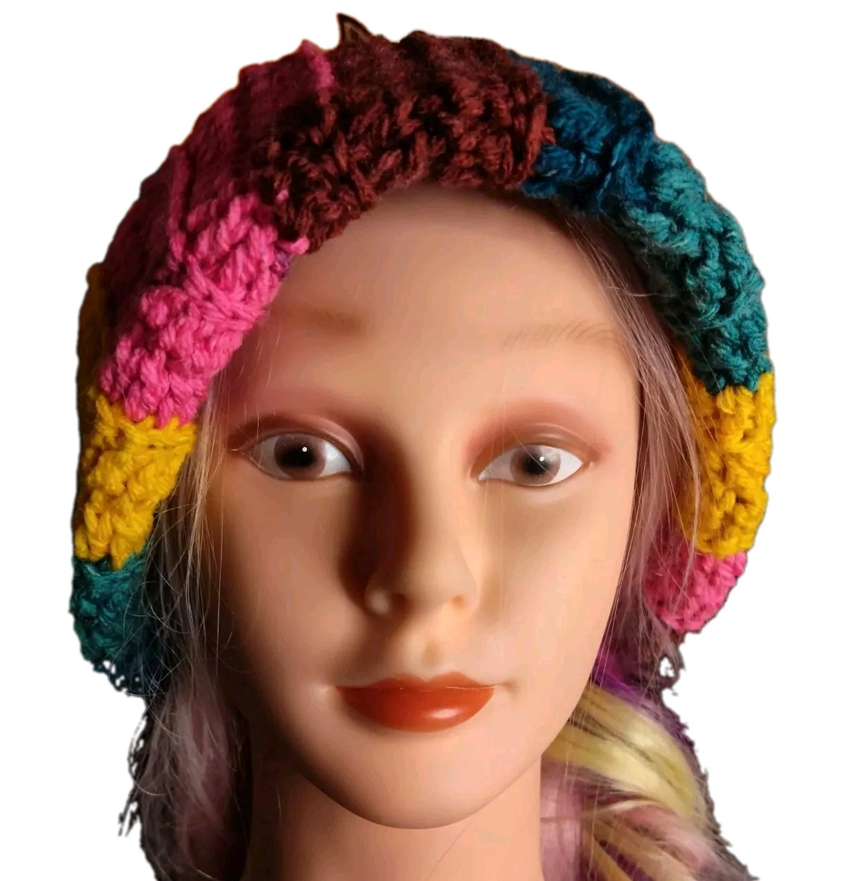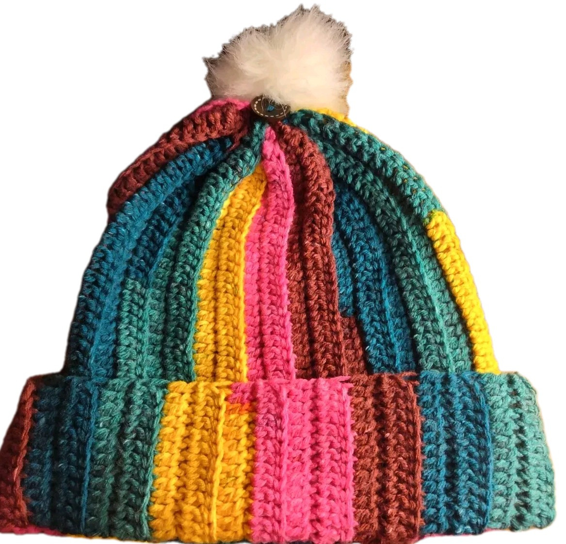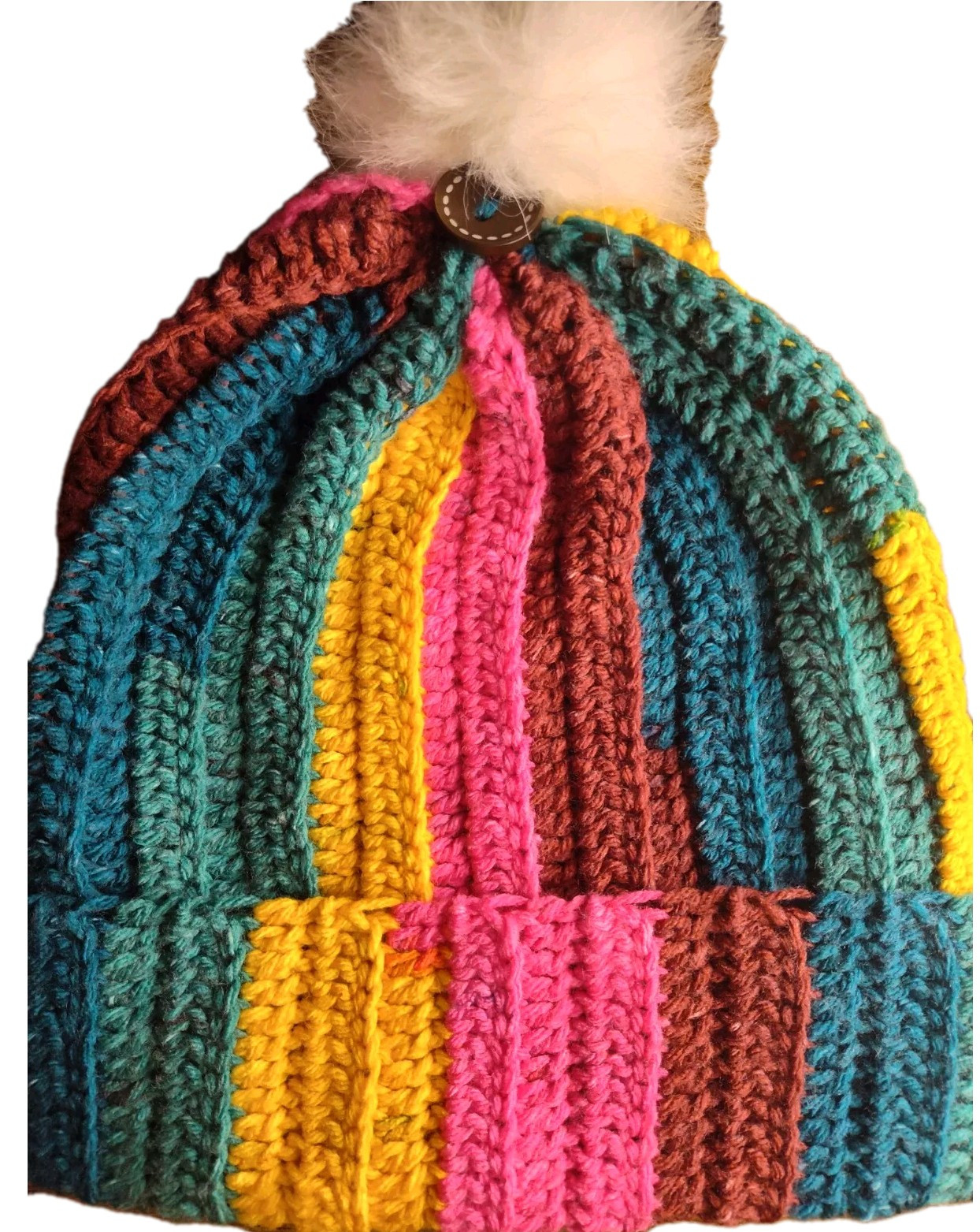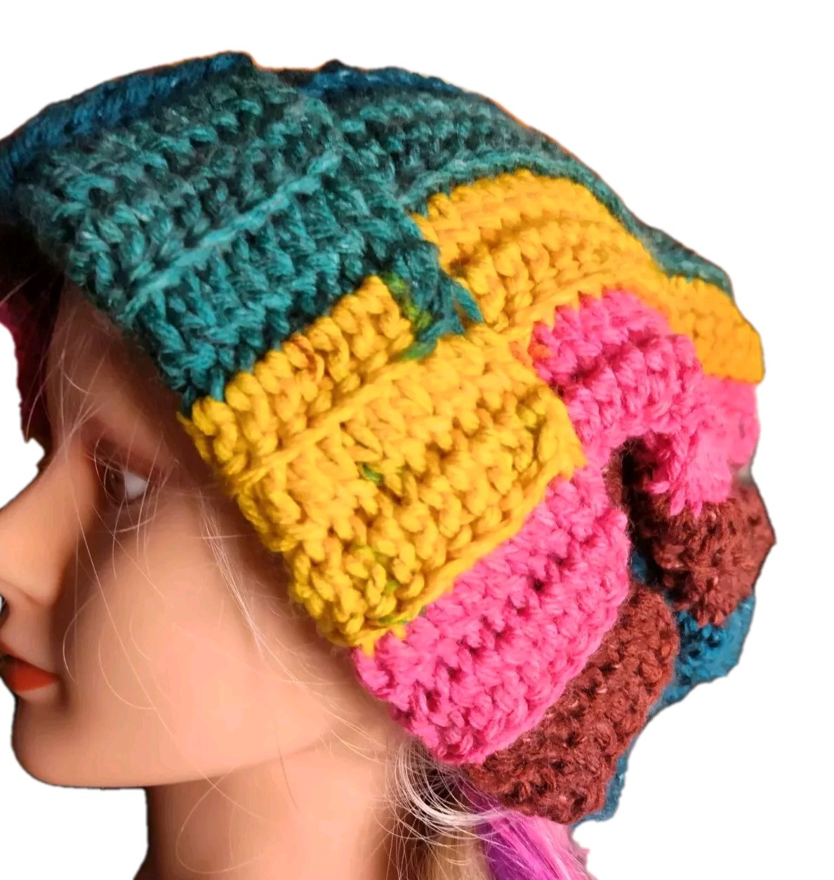 Striped Crochet Slouchy Beanie Winter Hat. Crochet Beanie Hat. Handmade