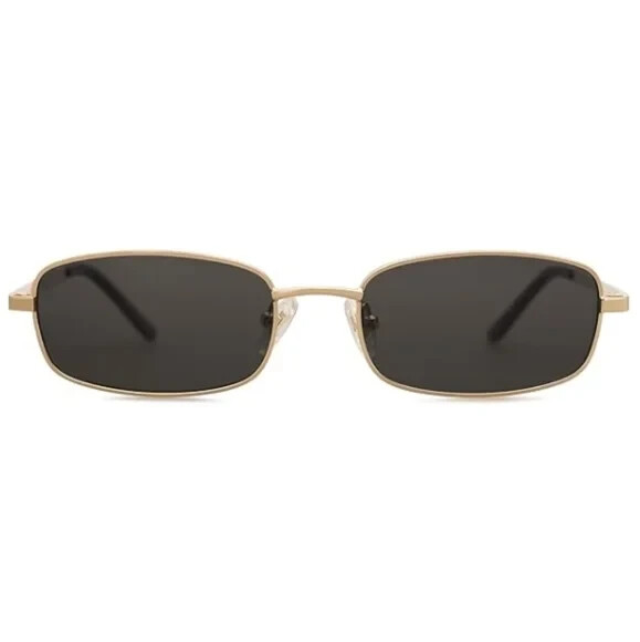 Narrow Rectangle 80s 90s Skinny Sunglasses SJ1187 Black Gold