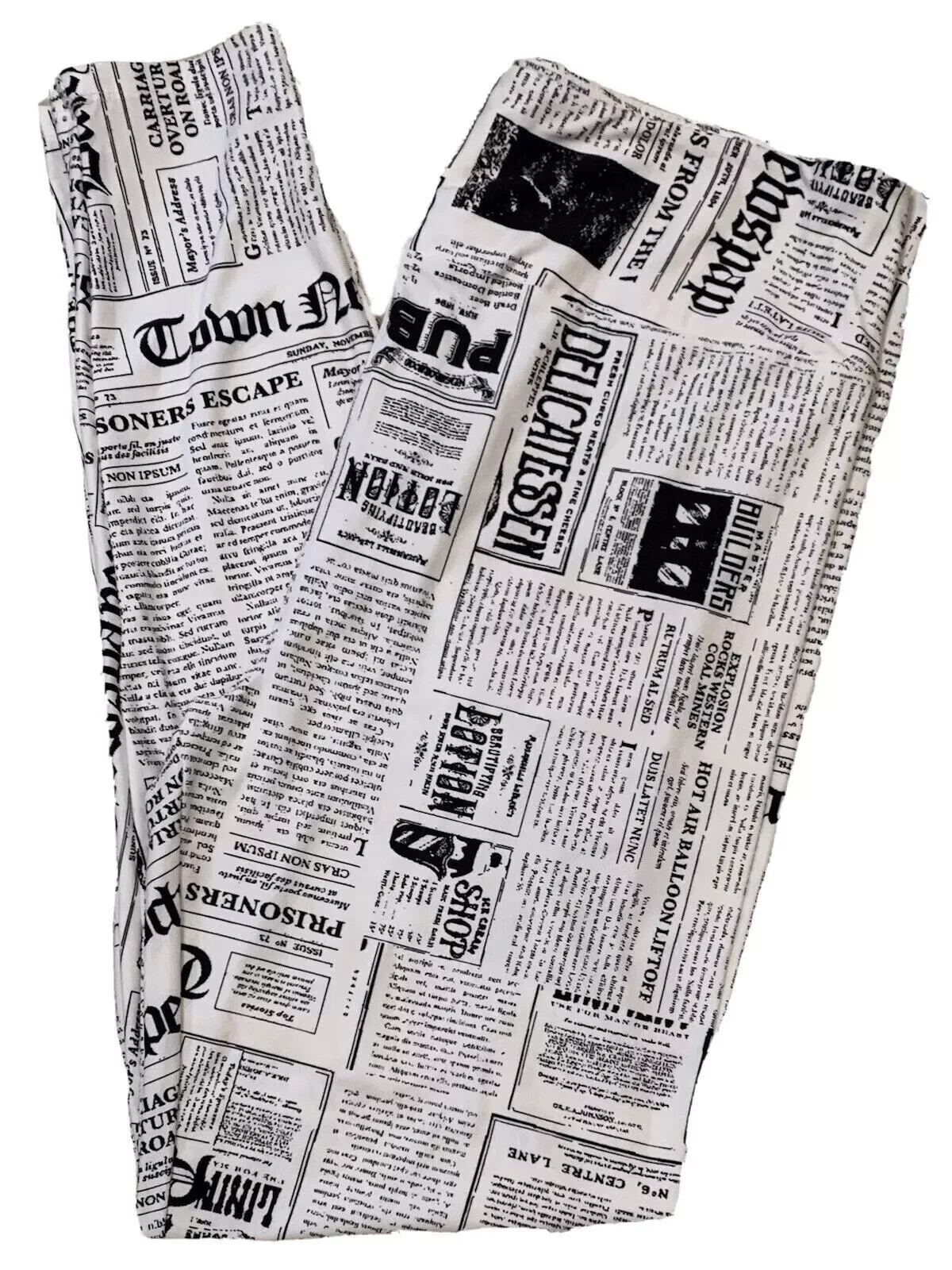 TC LuLaRoe Tall Curvy Leggings Town News Paper Newspaper Newsprint NWT U44