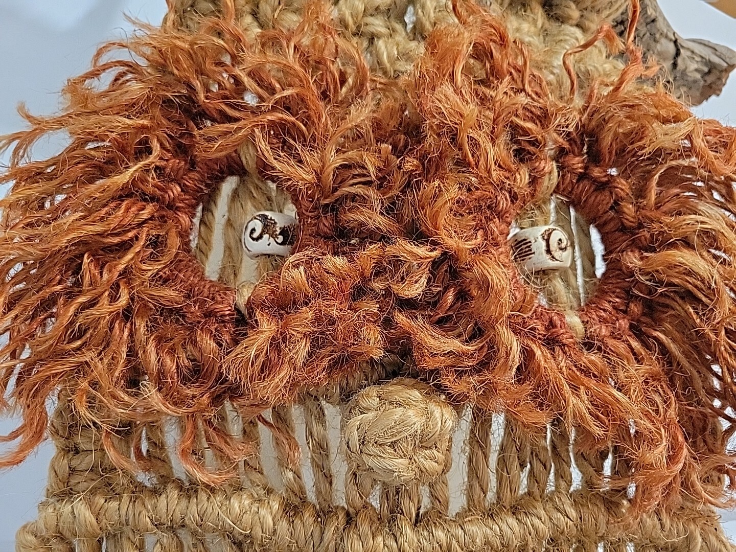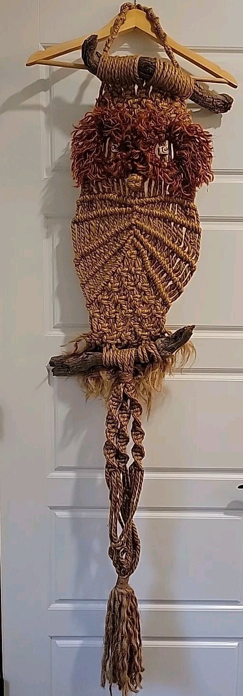 Vintage 70s Macrame Owl Wall Art Hanging Boho Jute Driftwood Plant Hanger 60"