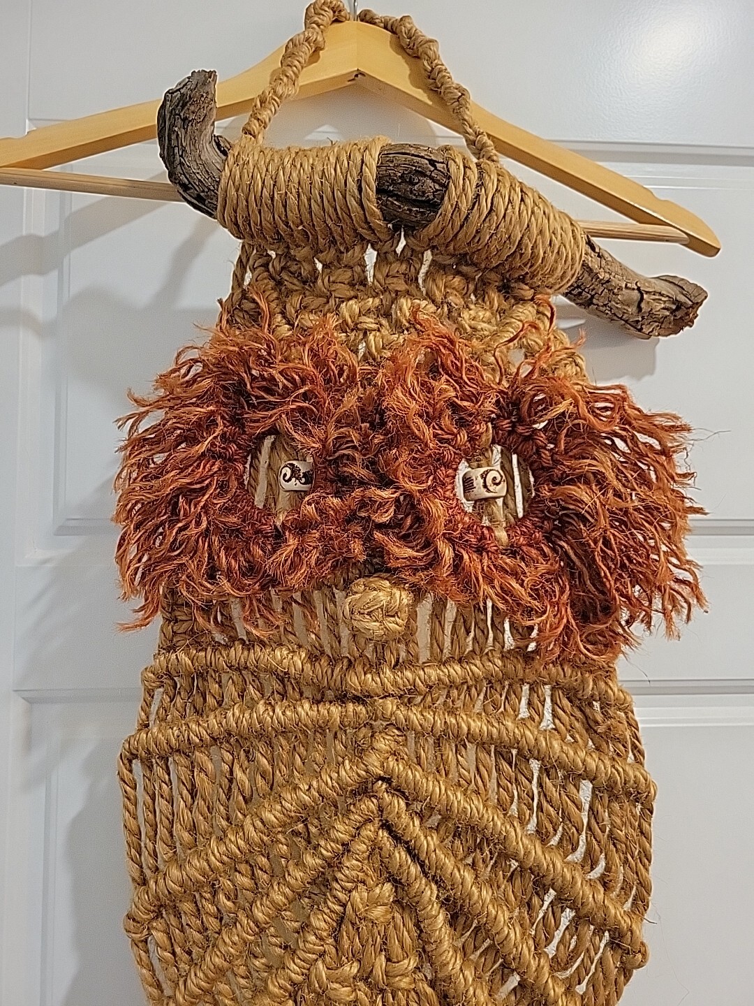 Vintage 70s Macrame Owl Wall Art Hanging Boho Jute Driftwood Plant Hanger 60