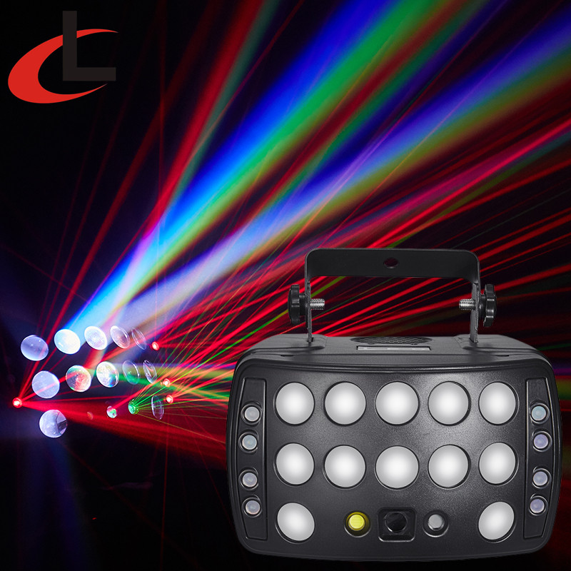 как выглядит 4in1 Laser Butterfly Lamp Pattern Strobe LED Party Light DMX Remote Laser Light фото