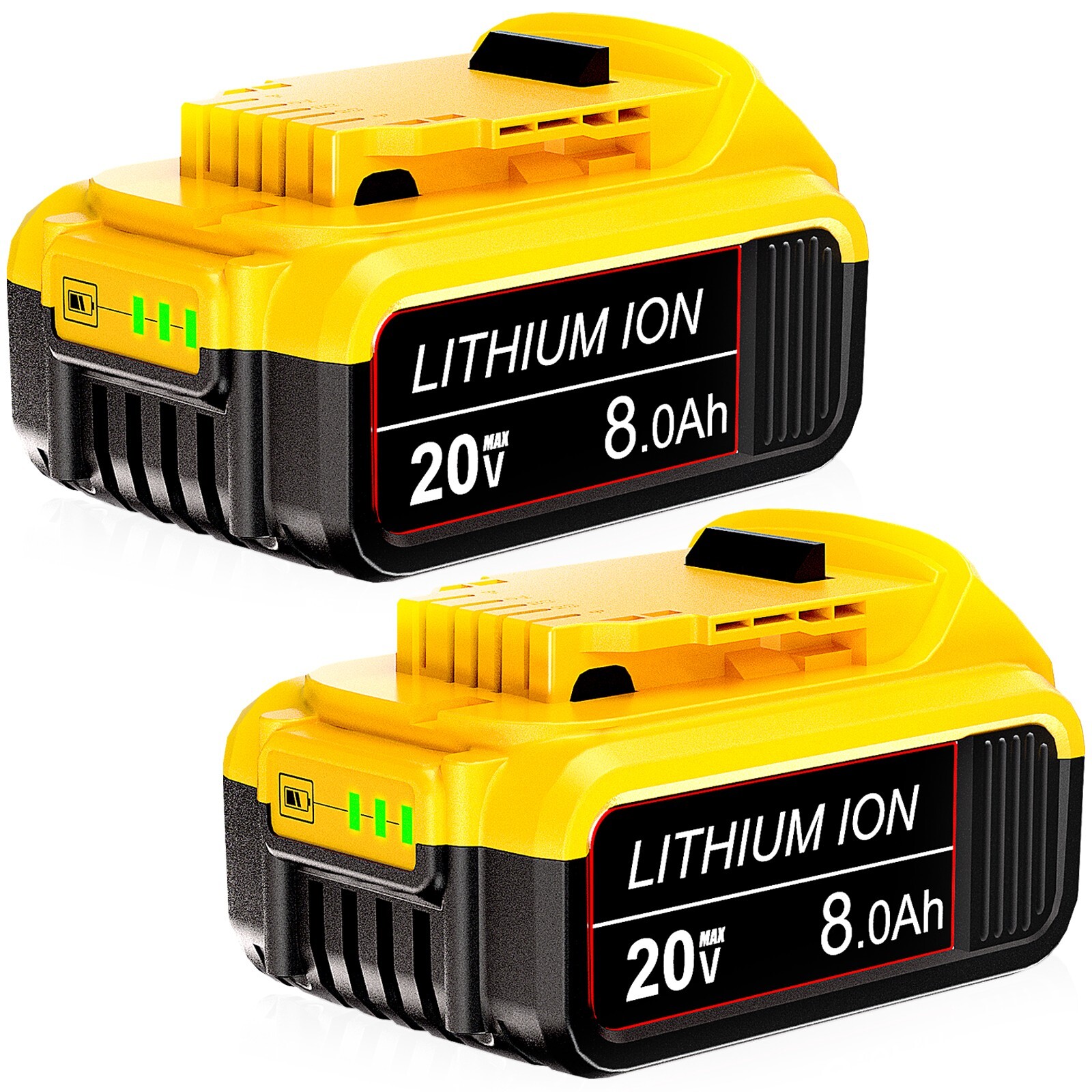 как выглядит 2Pack 20V 8.0AH Lithium Ion Battery For DeWalt 20 Volt Max XR DCB206-2 DCB205-2 фото