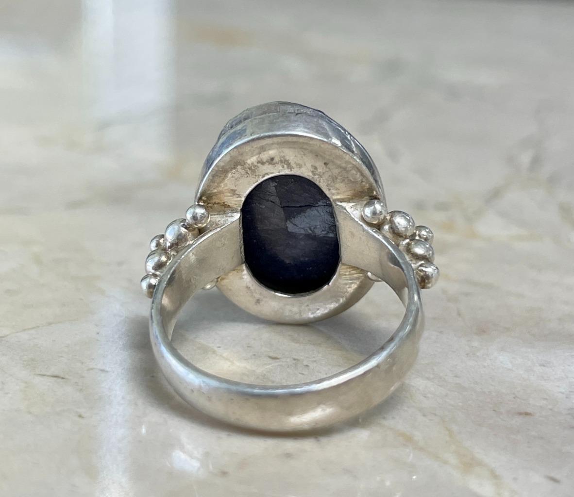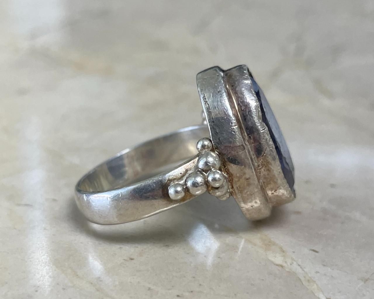 Sterling Silver Blue Quartz Ring from India Size 6 8grams 13-C781