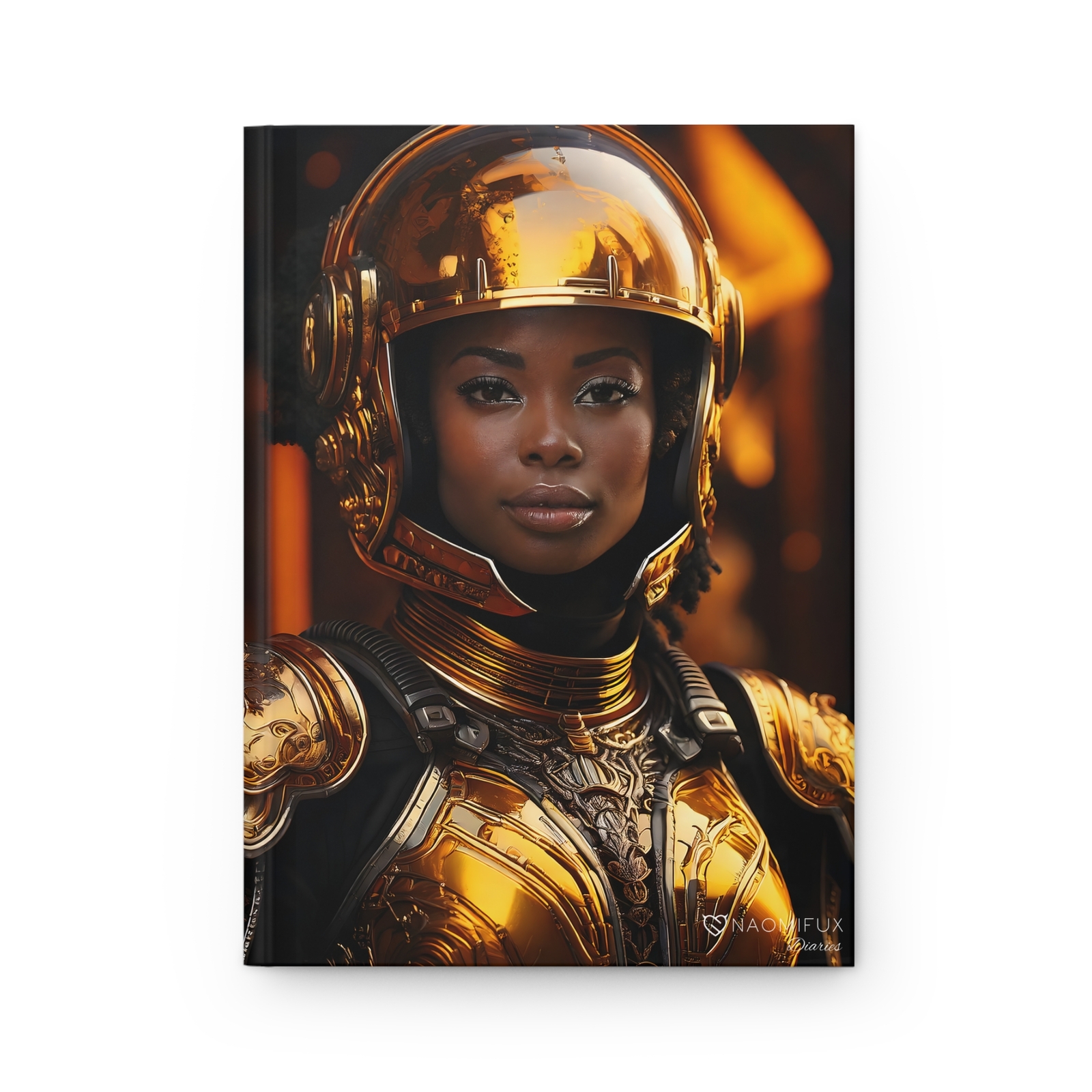 Futuristic Journal, Sci-Fi Diary, Black Girl Notebook, Golden Suit Sketchbook,