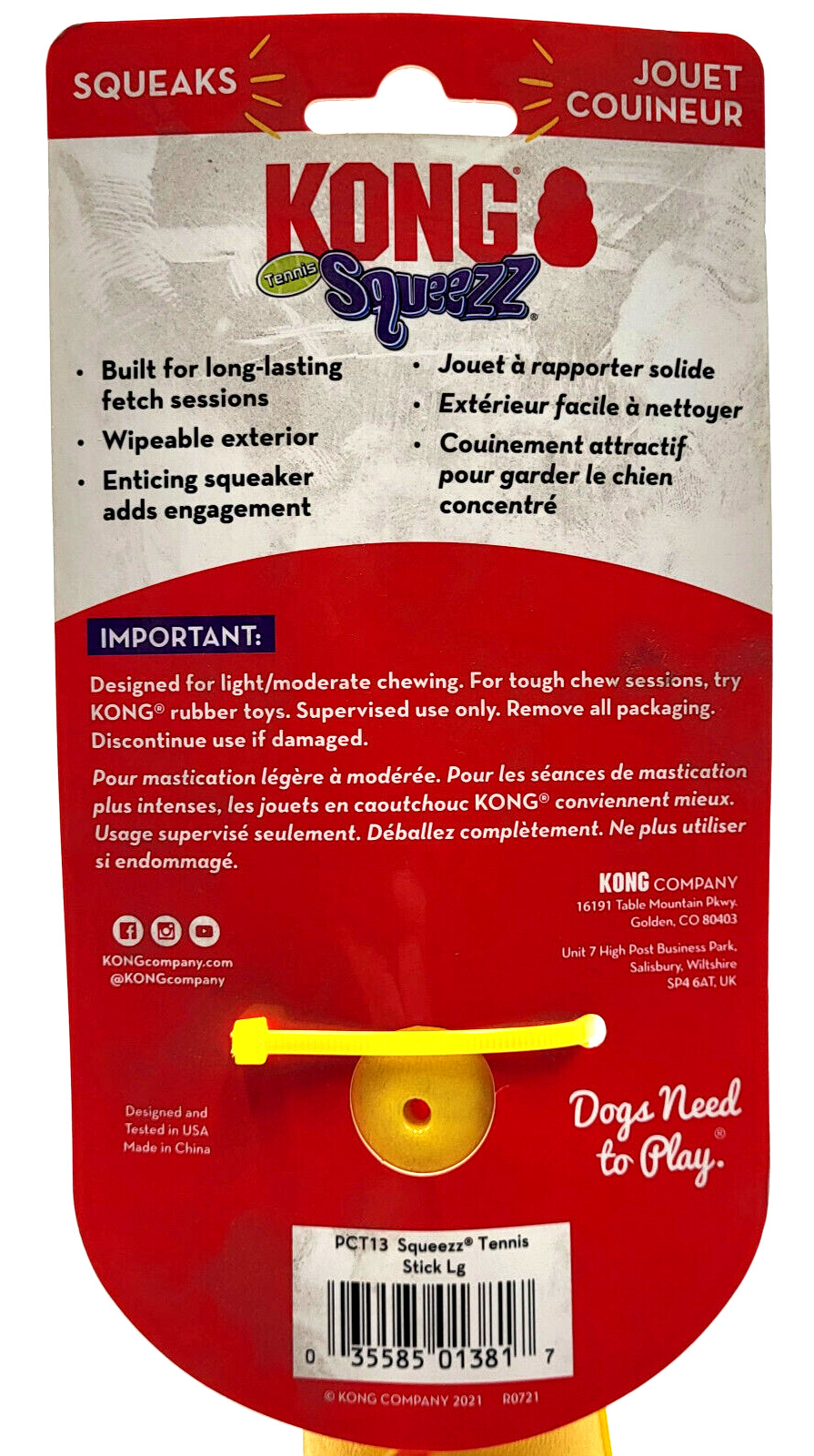 KONG Squeezz Tennis Stick Large Squeaky Bouncy Dog Fetch Toy 8.5