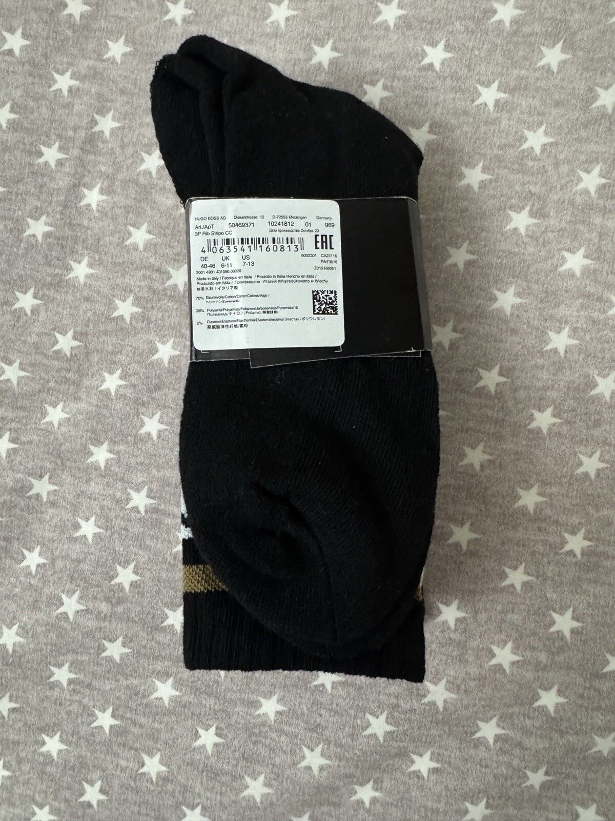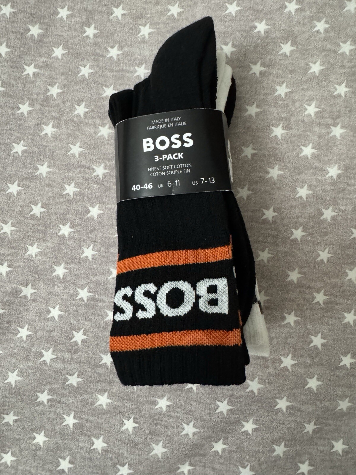 как выглядит 30 Hugo Boss Mens 3-Pack Bold Logo Stripe Cotton Socks Sz. 7-13 фото