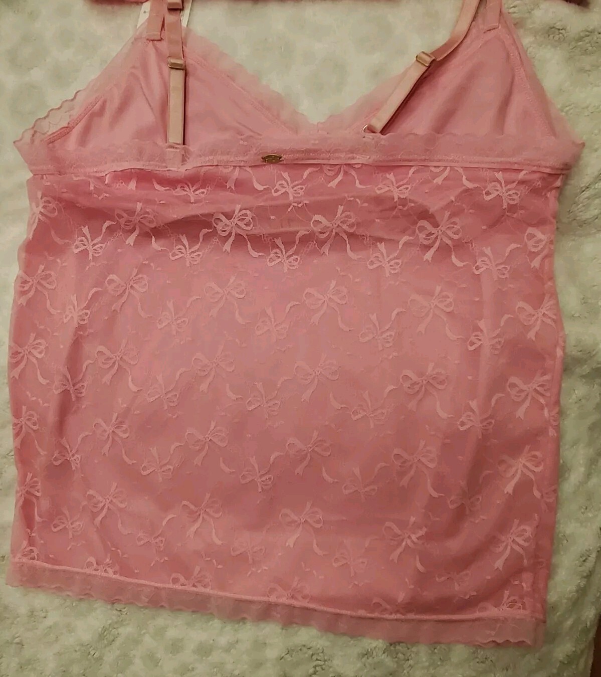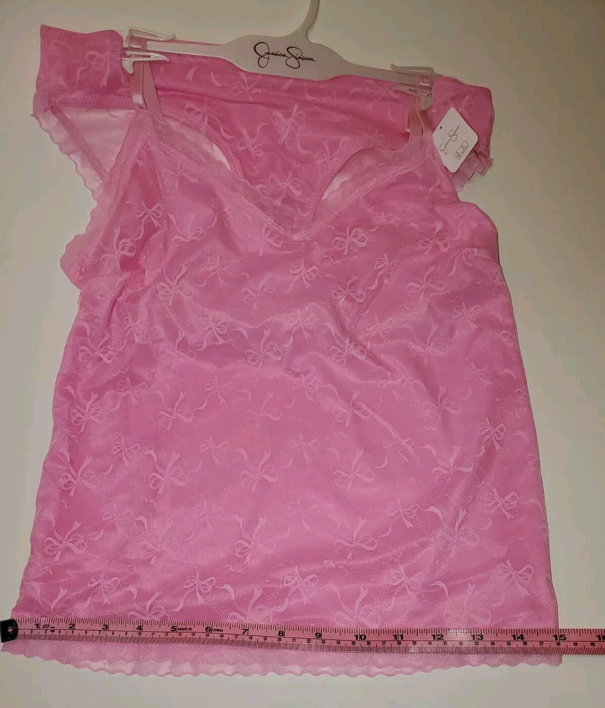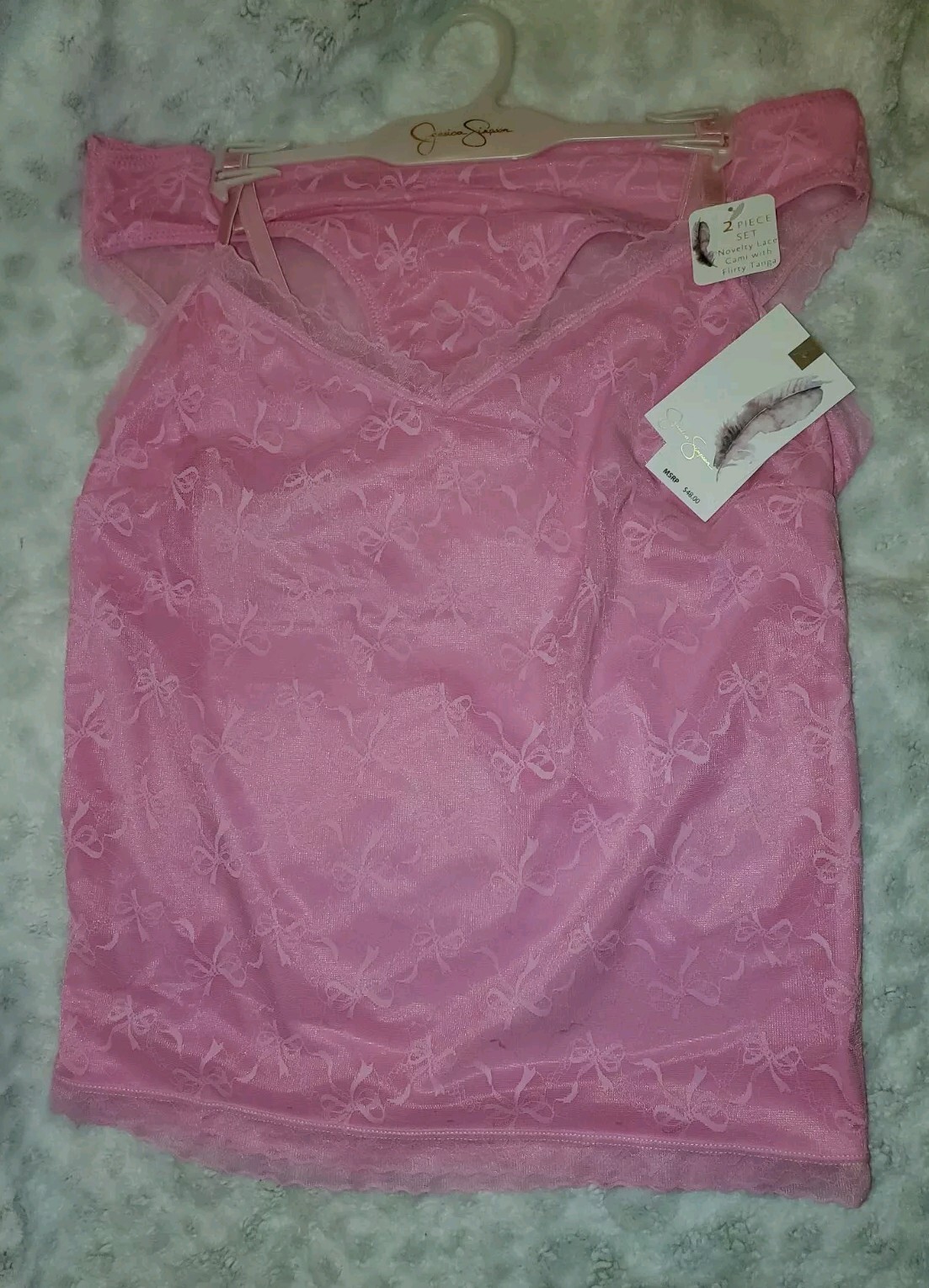 NWT Jessica Simpson Pink Ribbon Lace Cami And Undie PJ Pajama Set Sz L