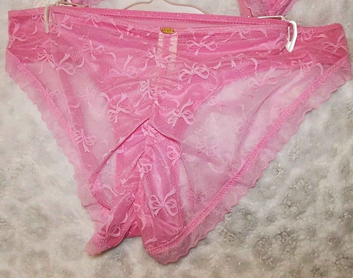как выглядит NWT Jessica Simpson Pink Ribbon Lace Cami And Undie PJ Pajama Set Sz L фото