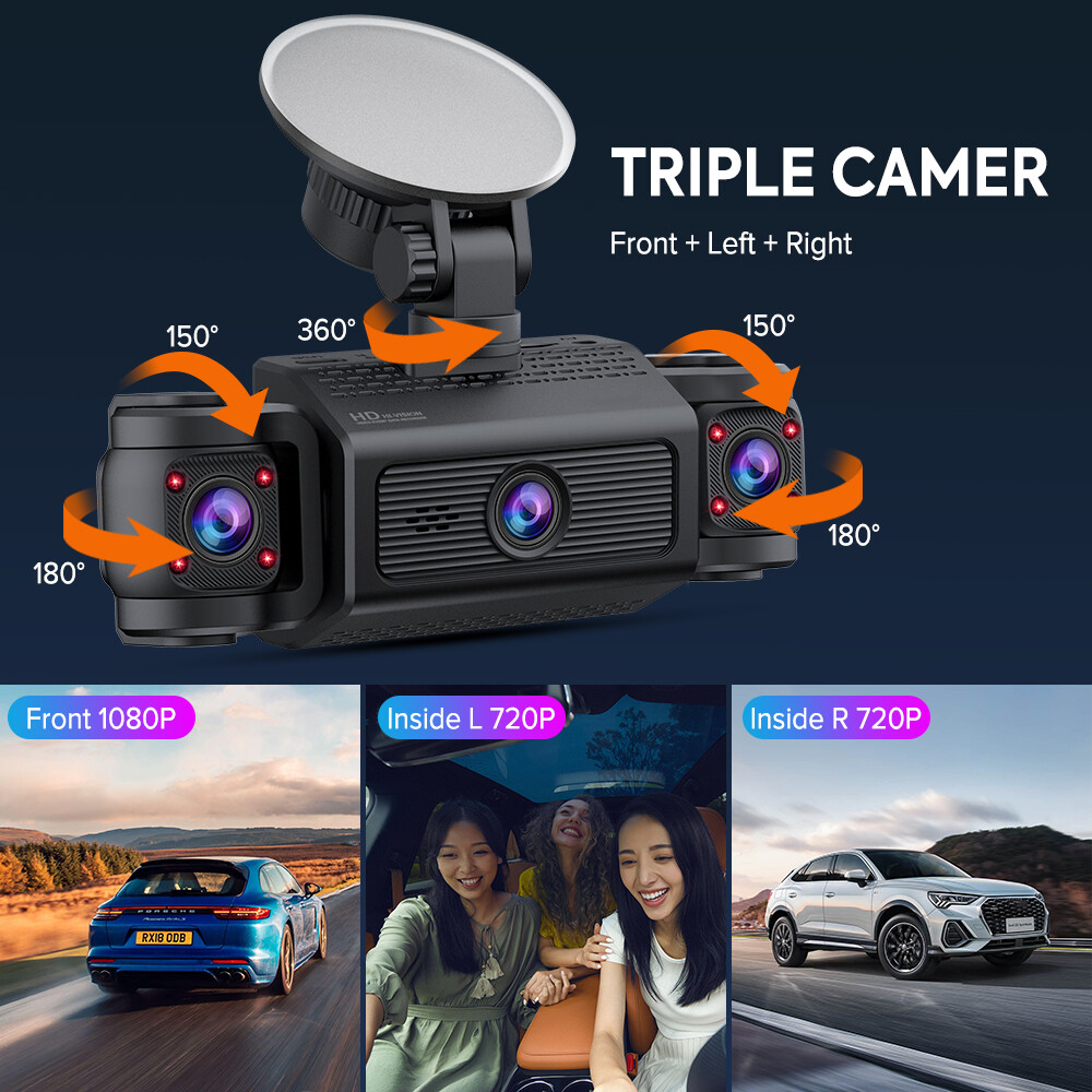 1080P Dash Cam Front and Inside Triple Dash Cam Video Recorder IR Night Vision