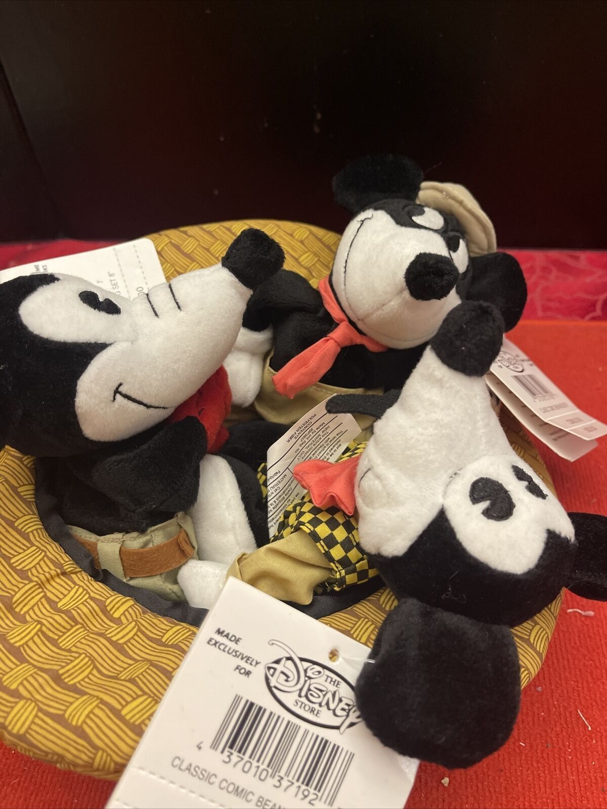 Disney RETIRED Mickey Mouse Classic Comic Bean Bag Set in a Hat New-with-Tags