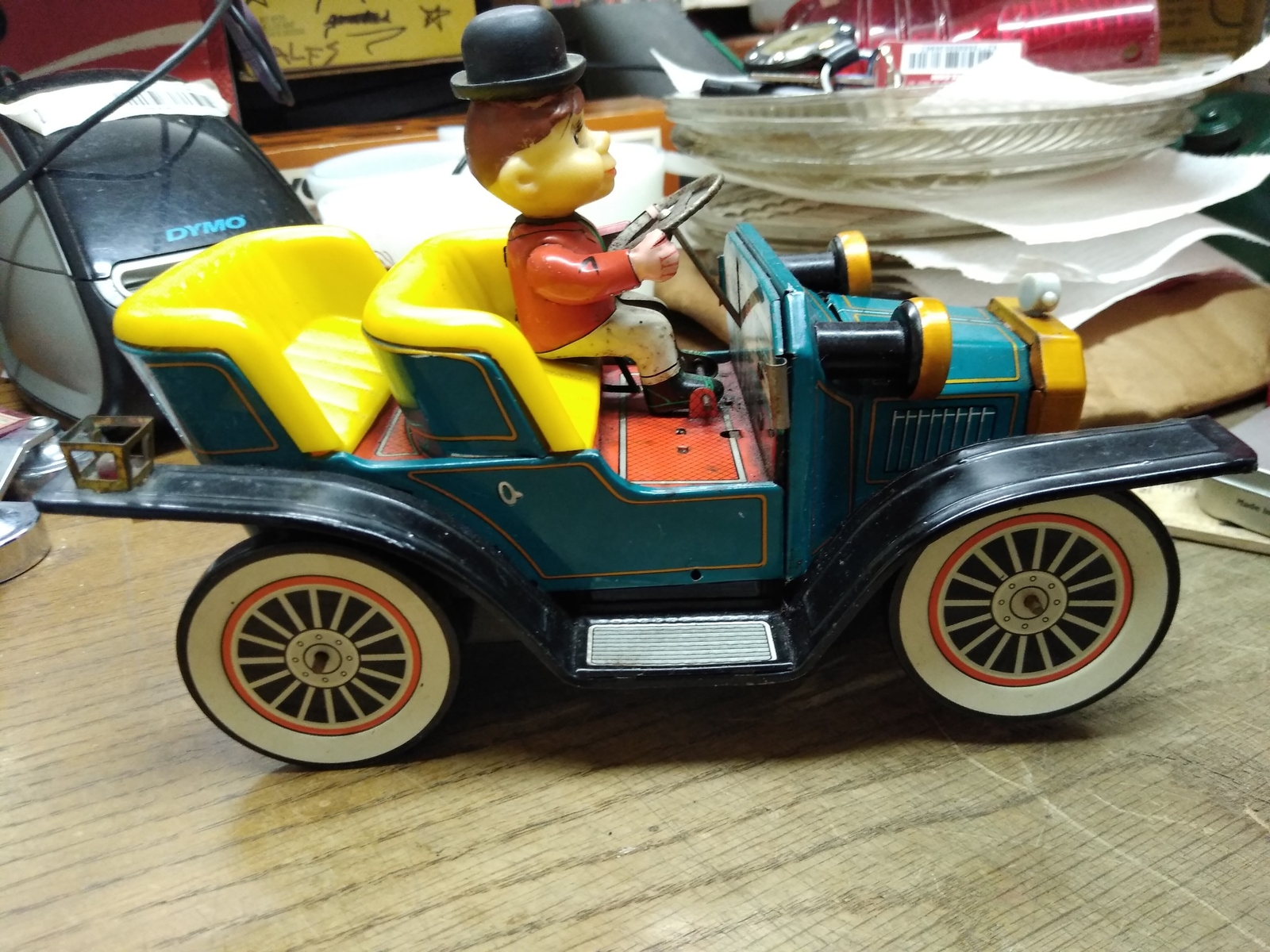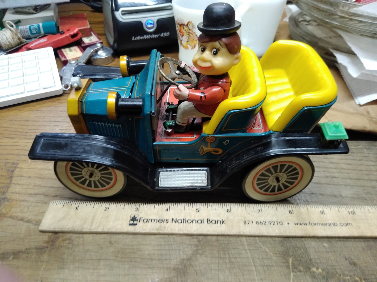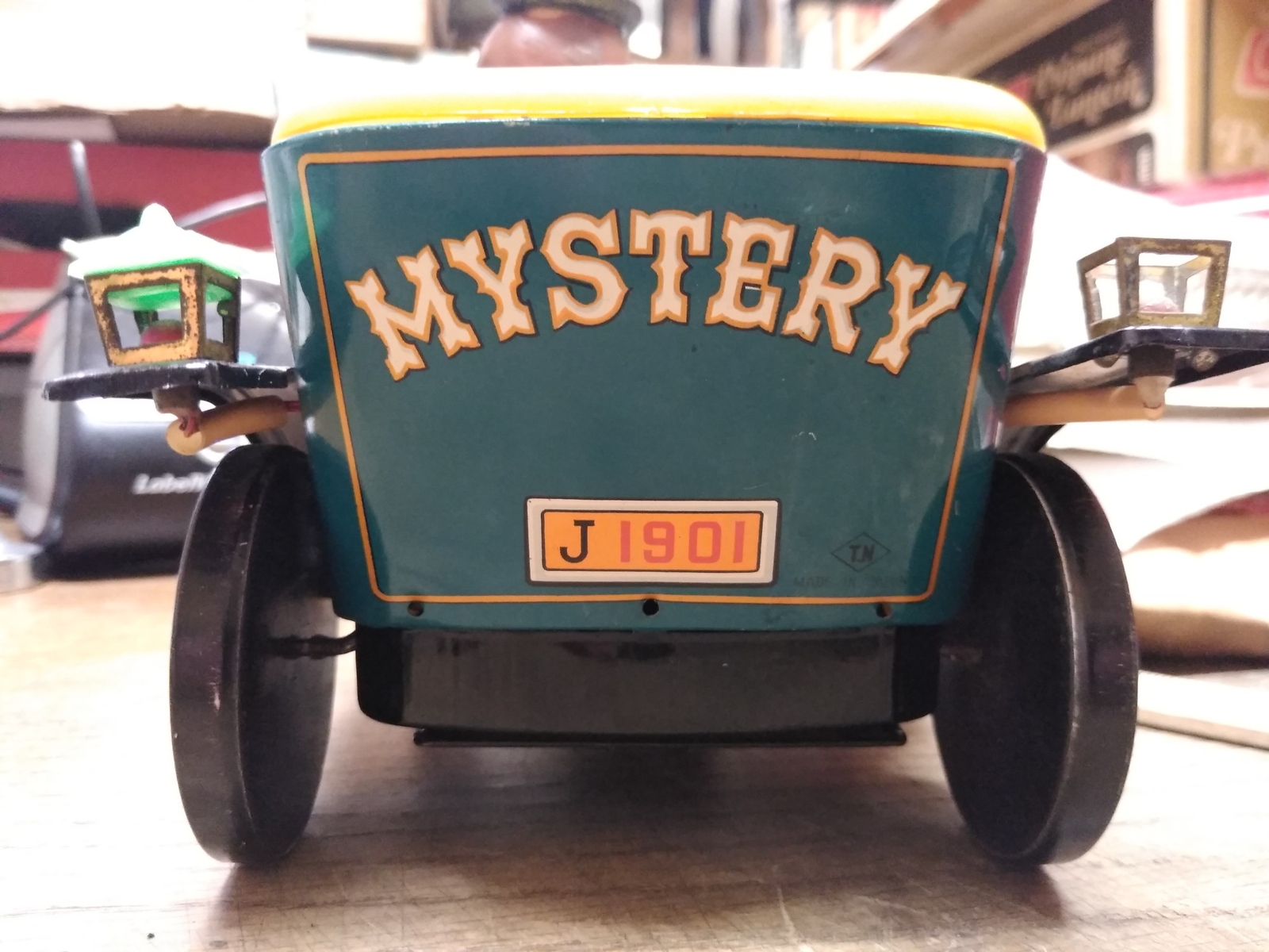 Vtg Japan TN Mystery 1901 Battery Powered Tin Toy Jalopy Car w/Lights Working