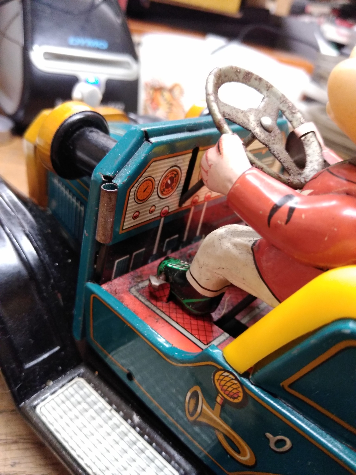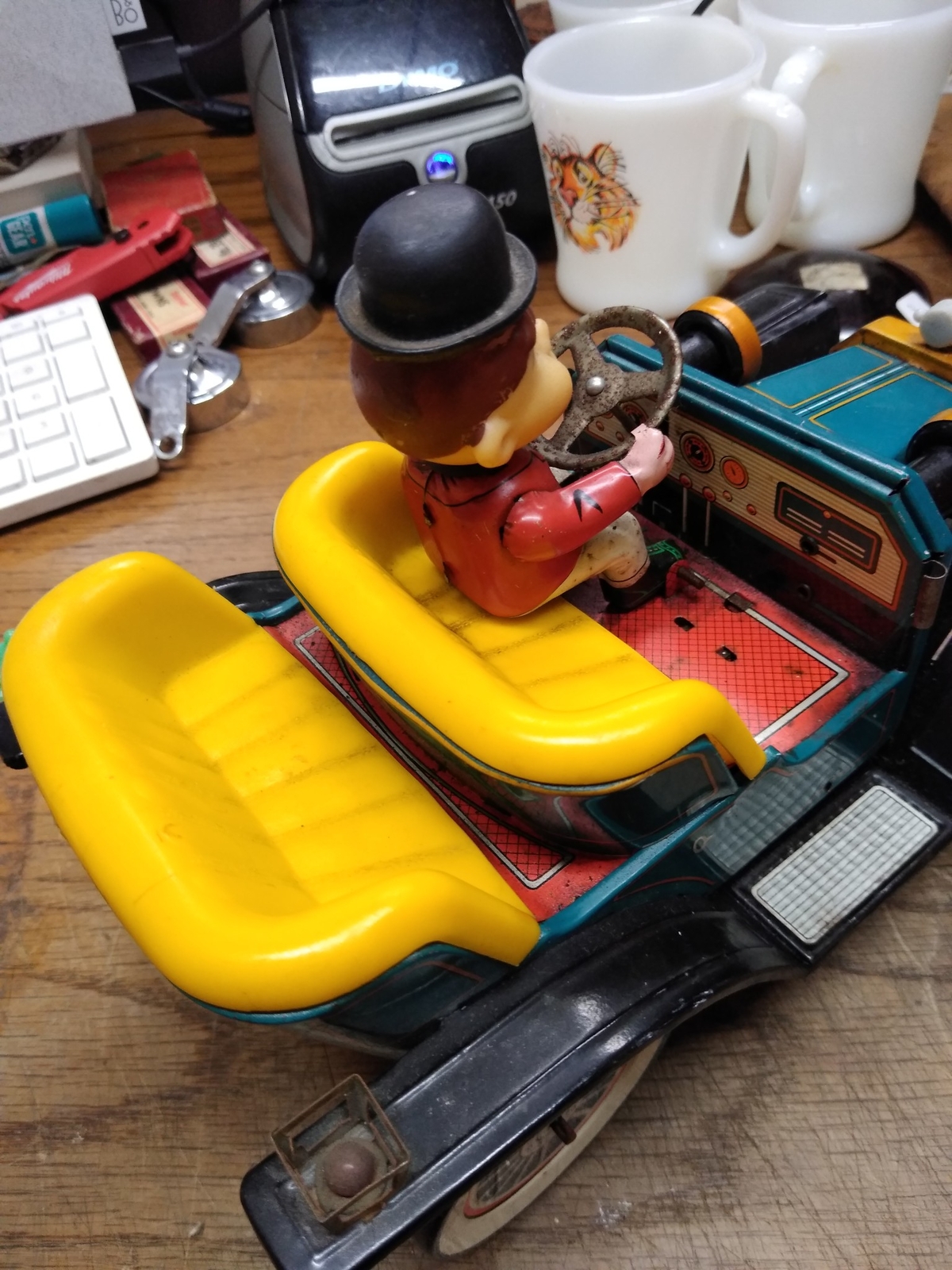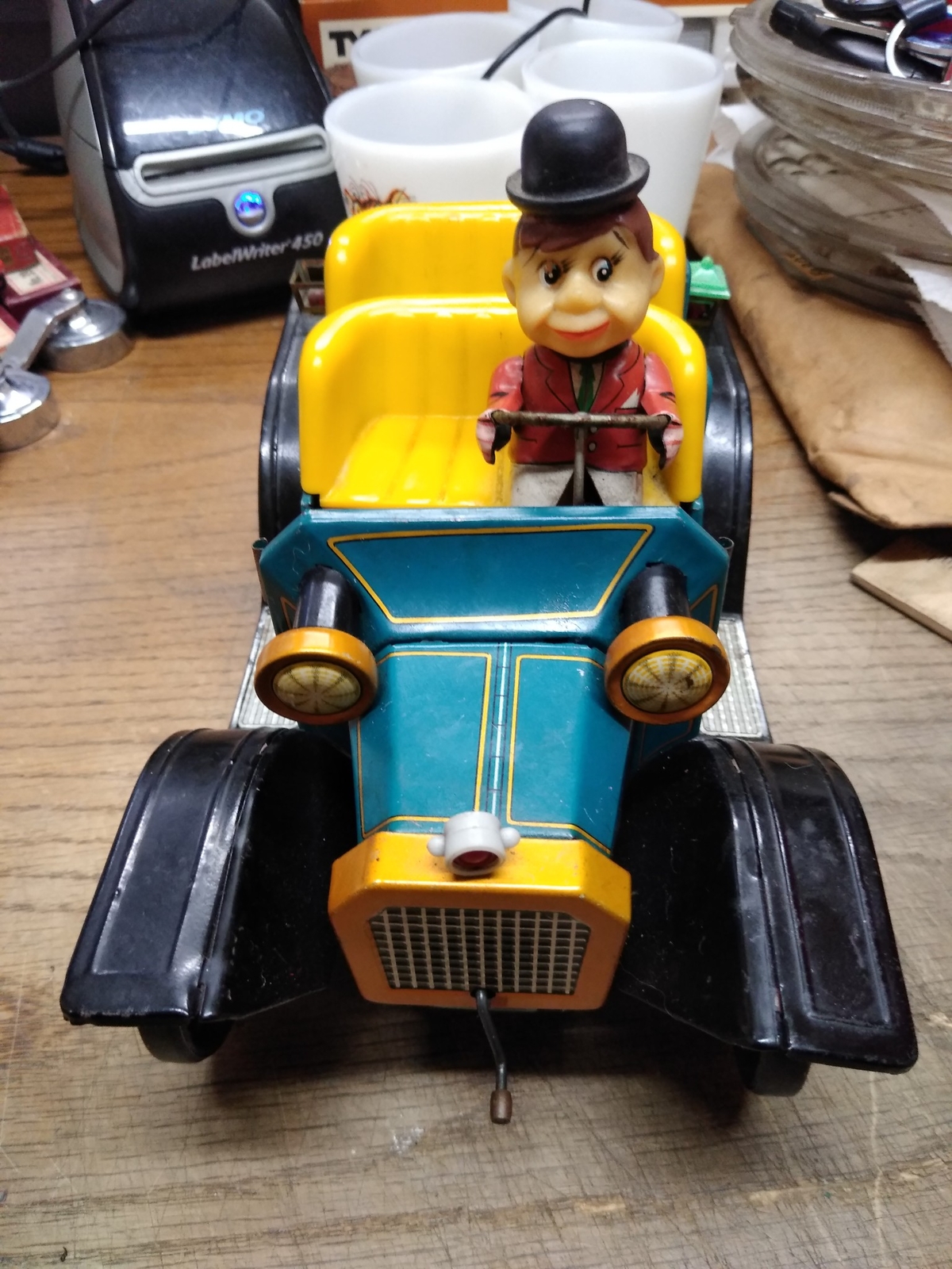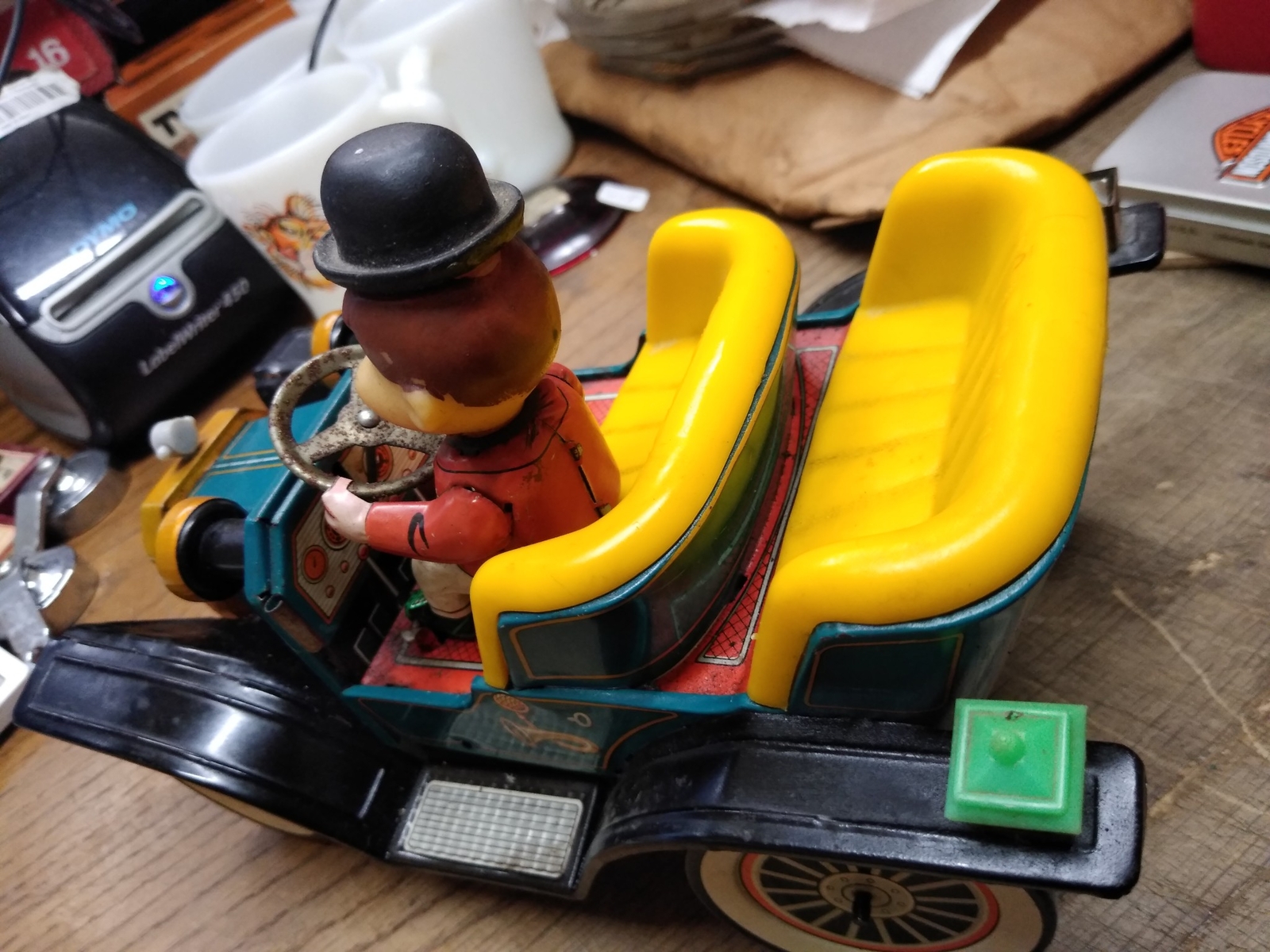Vtg Japan TN Mystery 1901 Battery Powered Tin Toy Jalopy Car w/Lights Working