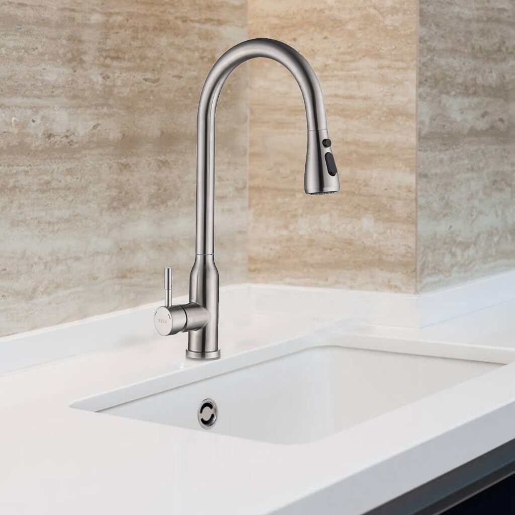 как выглядит Pull Down Spray Head for Kitchen Faucet, 3 Modes with 9 Brushed Nickel фото