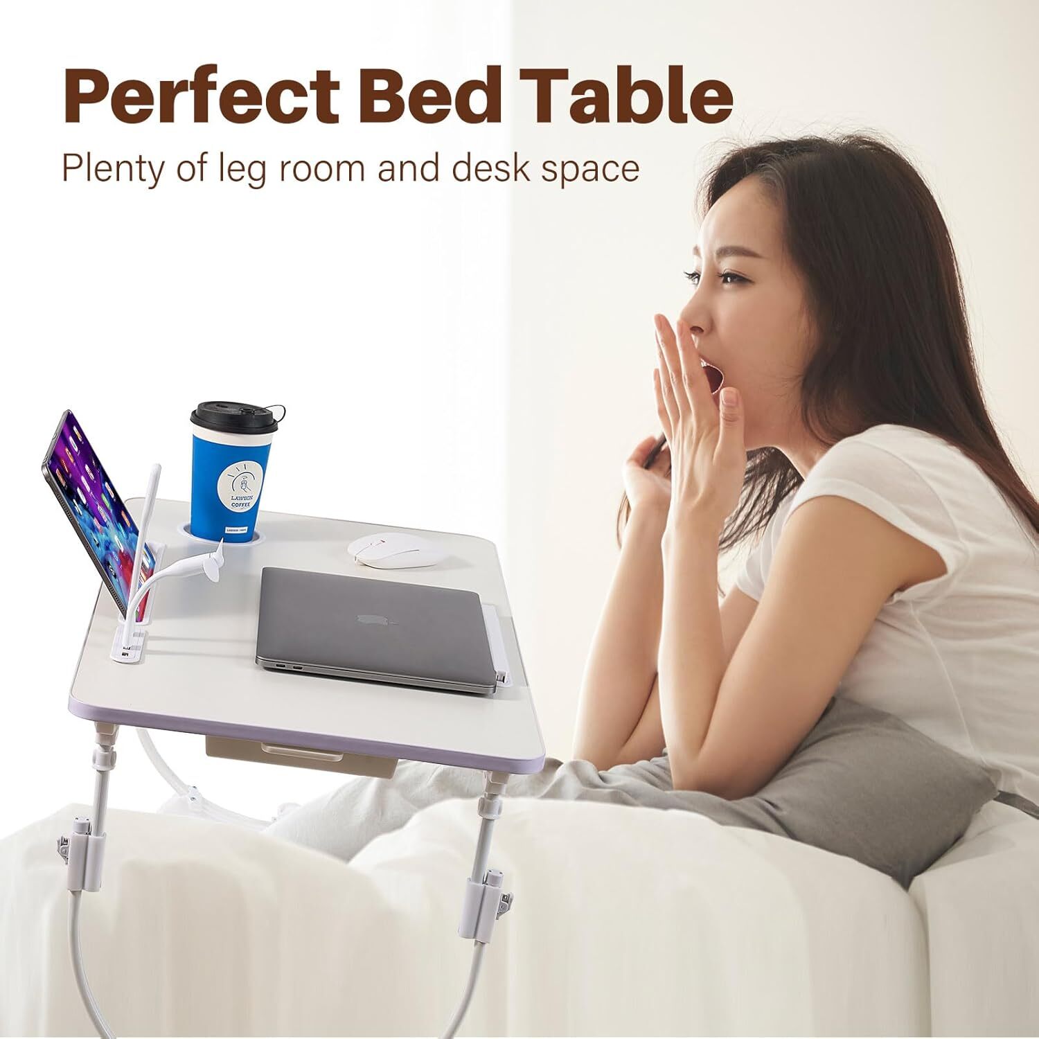 Adjustable Laptop Bed Desk with 4 USB Ports, Storage Height adjustable, White