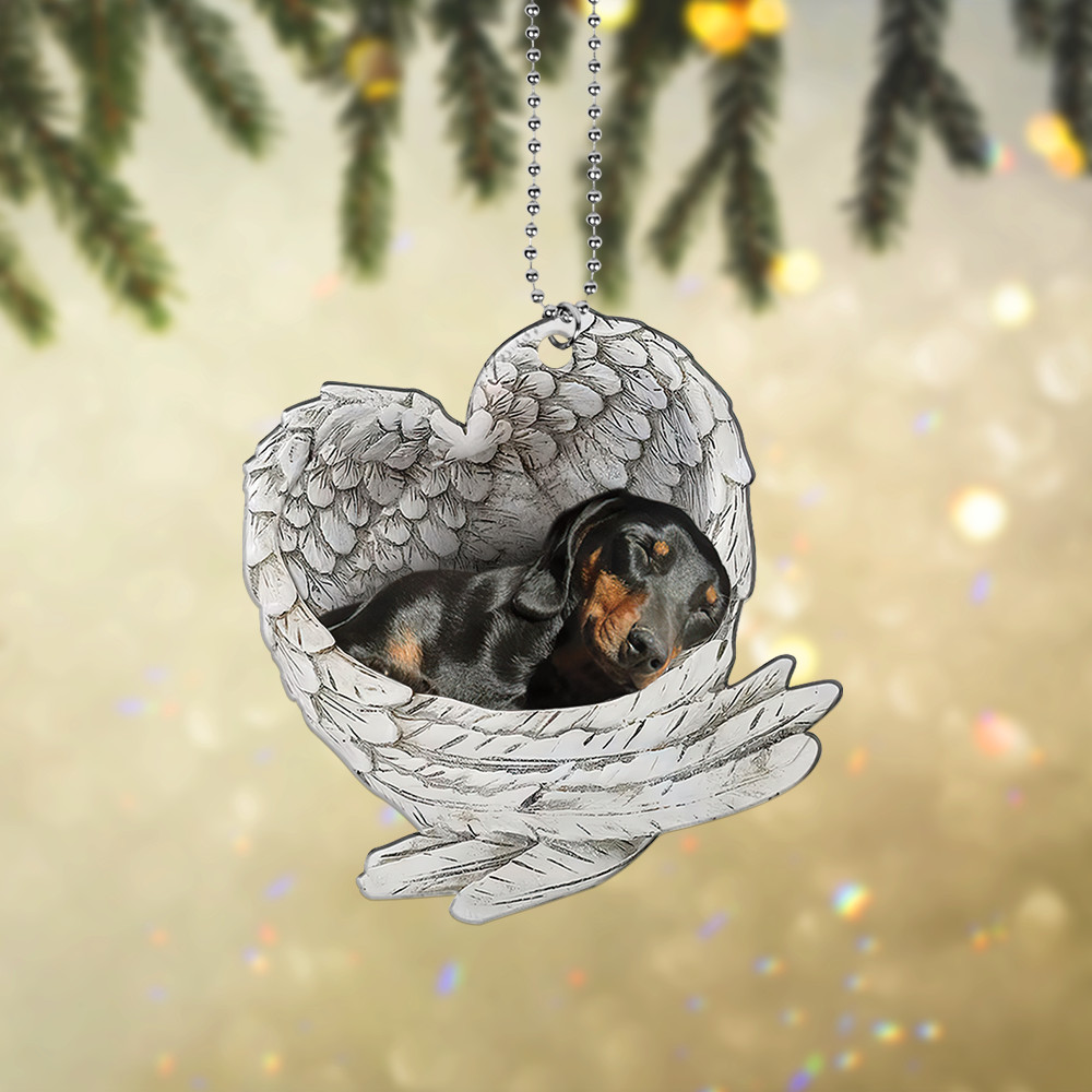 Black and tan dachshund dog Sleeping Angel , Dog Angel Wings Christmas Ornament