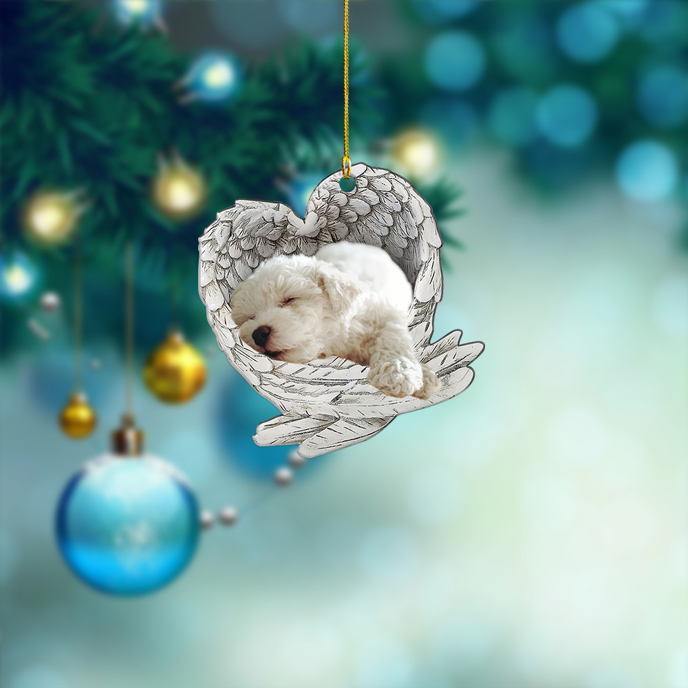 White Poodle Dog Sleeping Angel Ornament, Dog Angel Wings Christmas Ornament