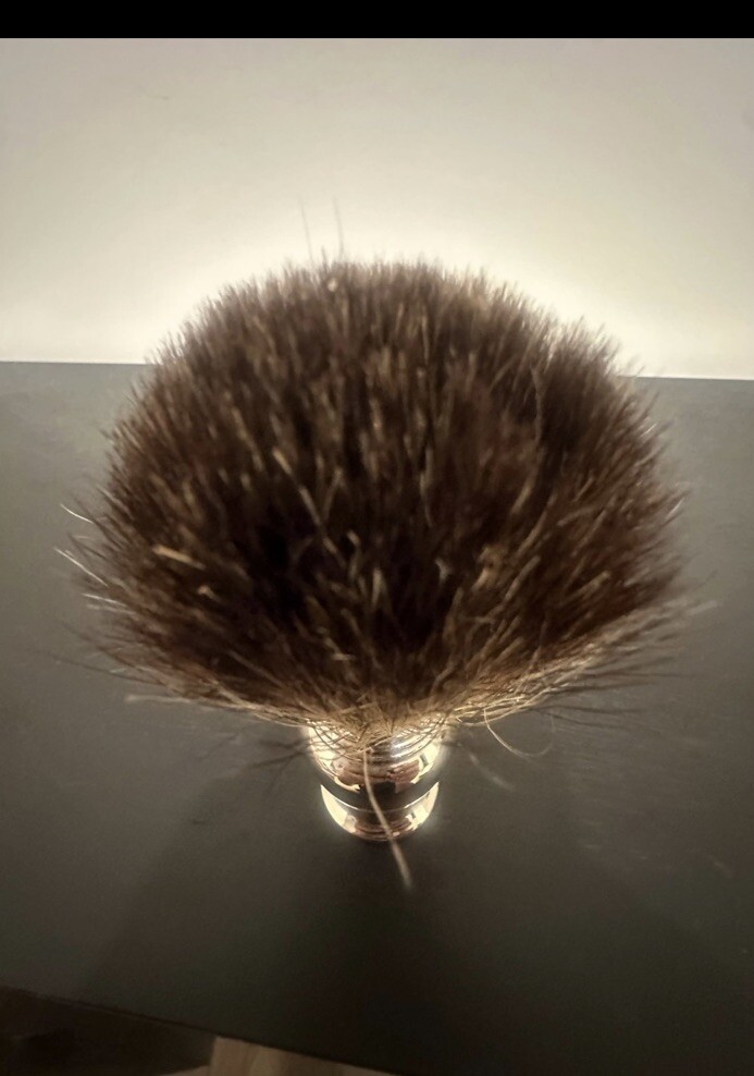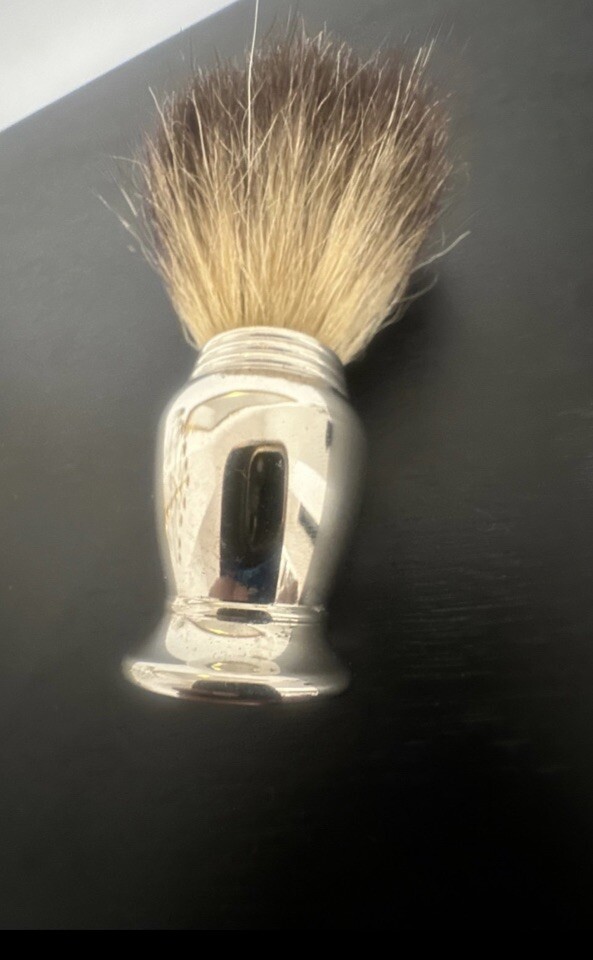 • Vintage 1980s-90s Silver Color Shaving Brush Badger Bristle Shaving Barber
