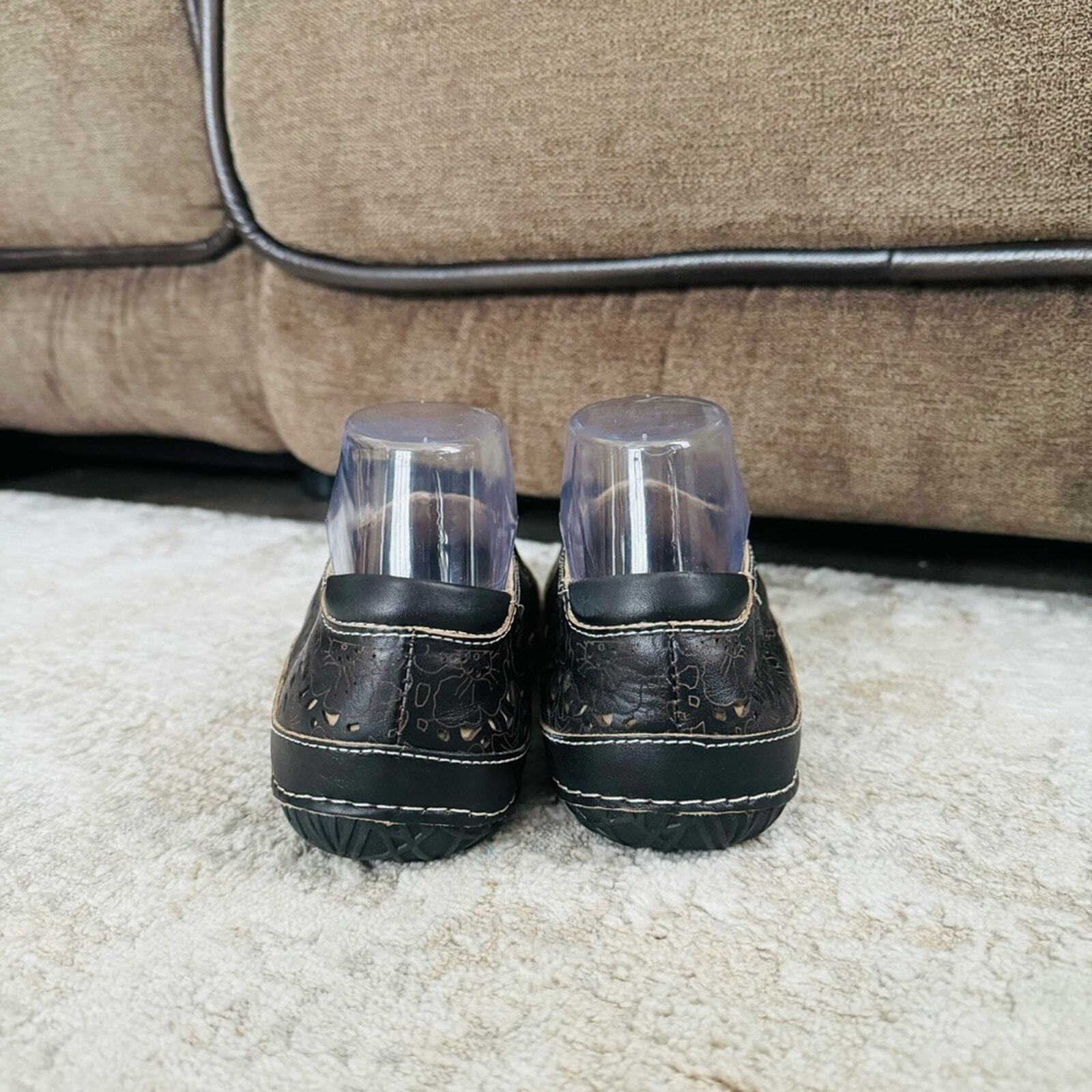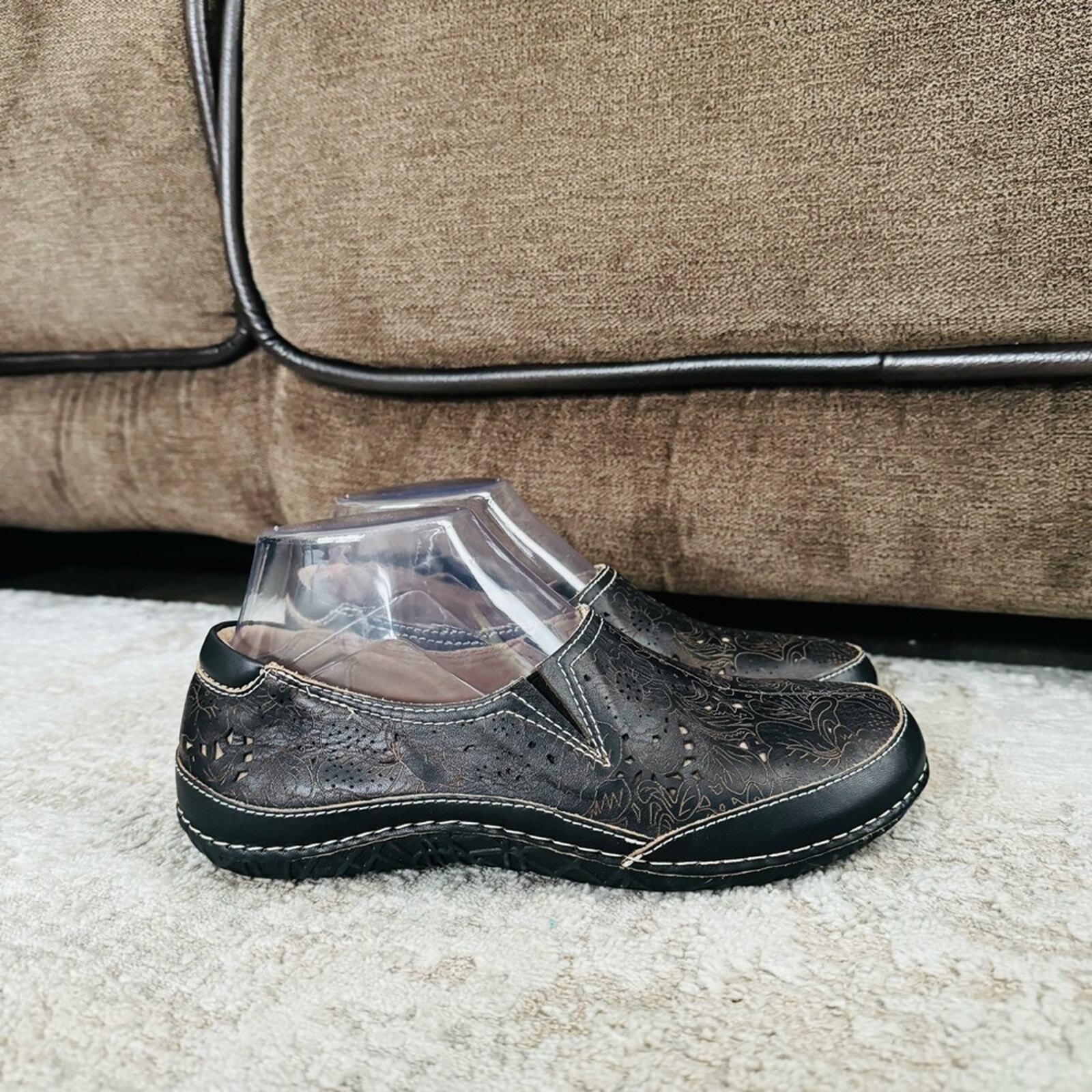 L Atiste spring black floral stitch step Libora Slip On Shoes woman s size 38
