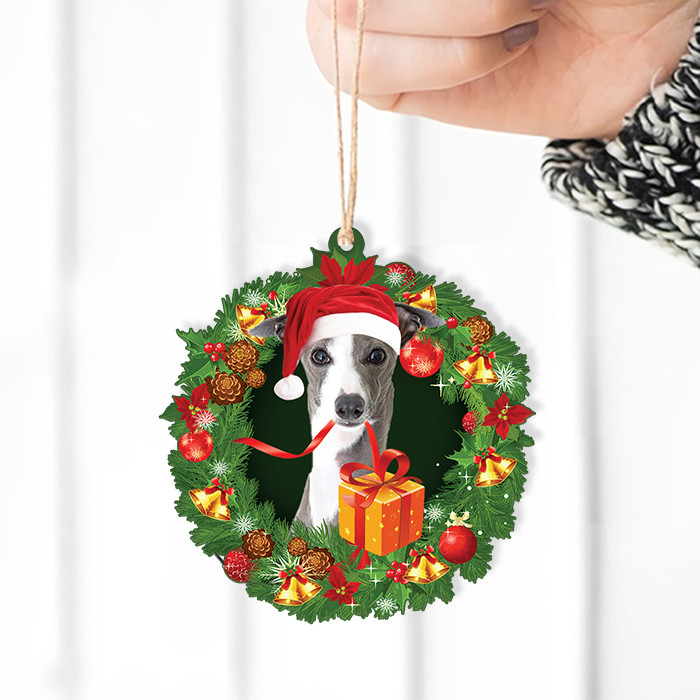 • Greyhound Dog Christmas Wreath Ornament, Love Greyhound Dog Christmas Ornament
