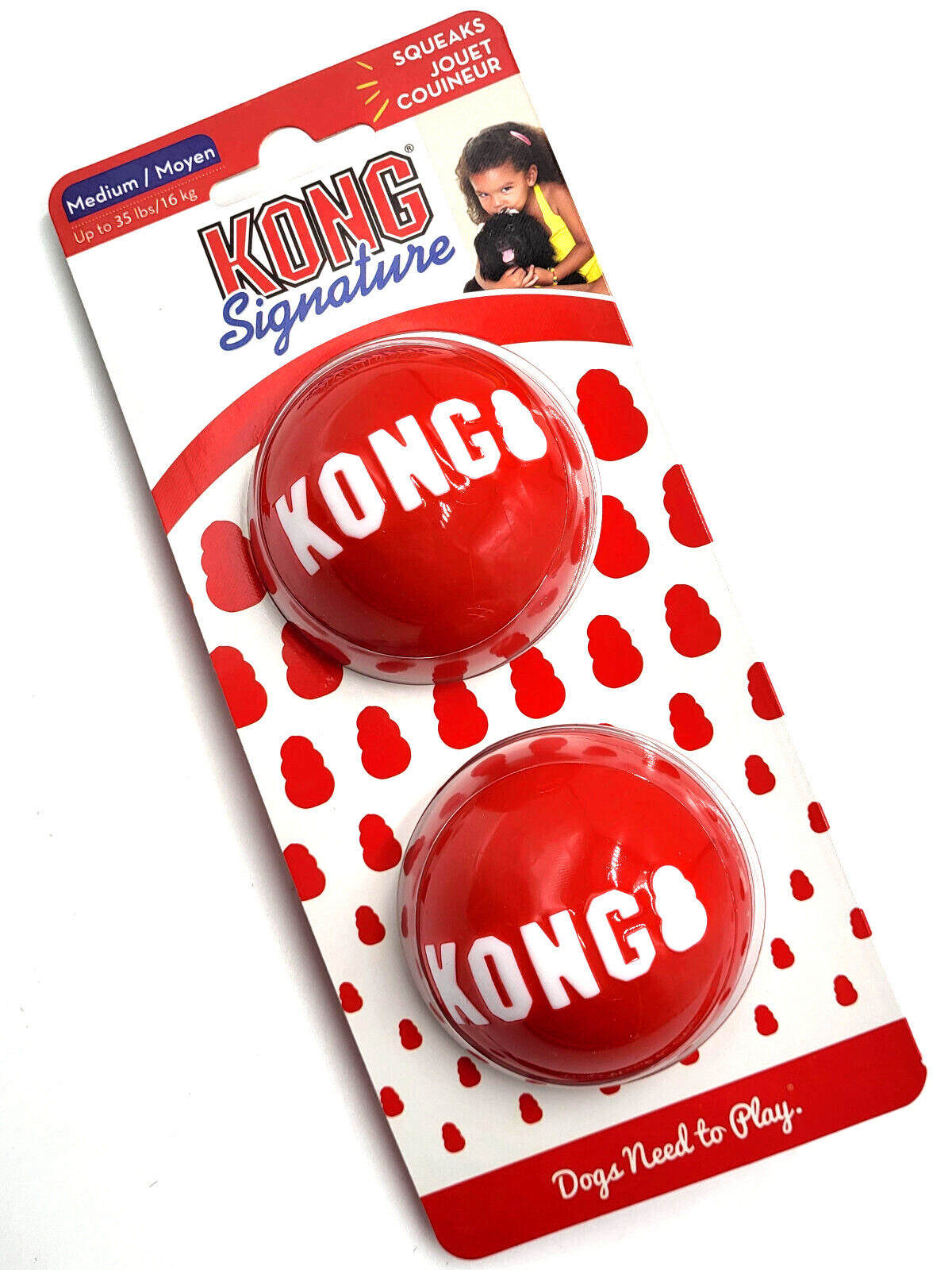 Kong Signature Balls 2-pk Md Squeaky Bouncy Dog Fetch Toy 2.5