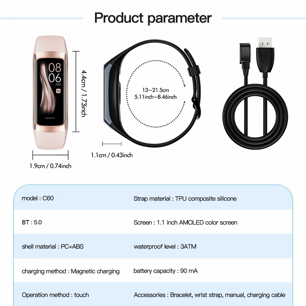 как выглядит Smart Watch Women Ladies Men Fitness Tracker Blood Oxygen Waterproof Wrist Band фото