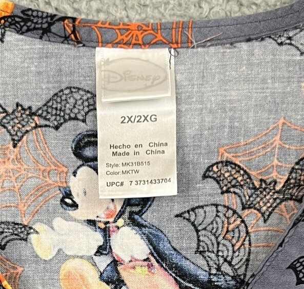 как выглядит Disney Mickey Mouse Halloween Scrub Top Womens 2X Pockets Back Waist Cinch Tie фото