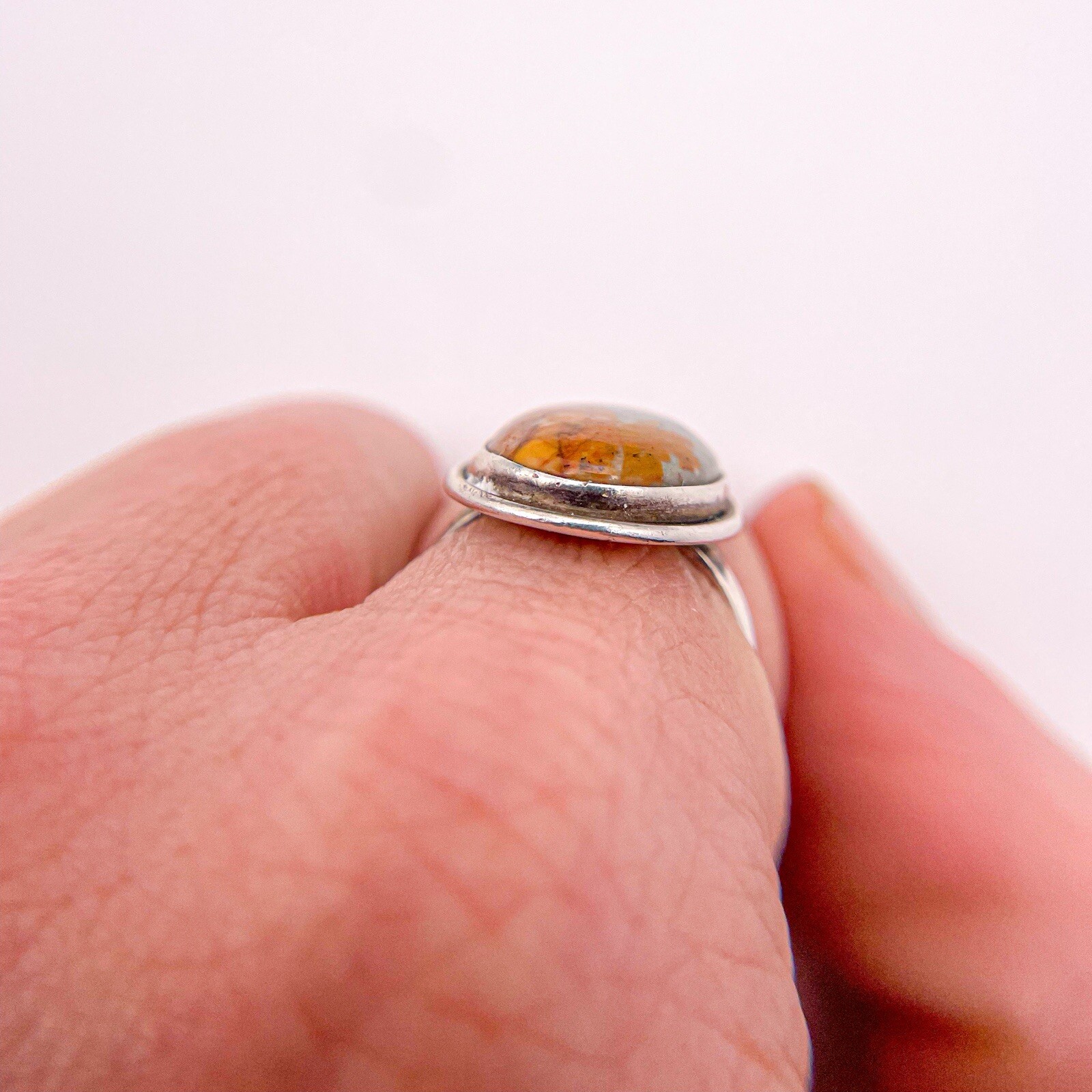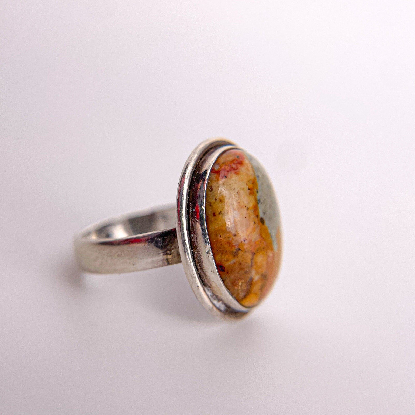 как выглядит Sterling Silver 925 Jasper Oval Handmade Bezel Set Cabochon Ring. Size 7. фото