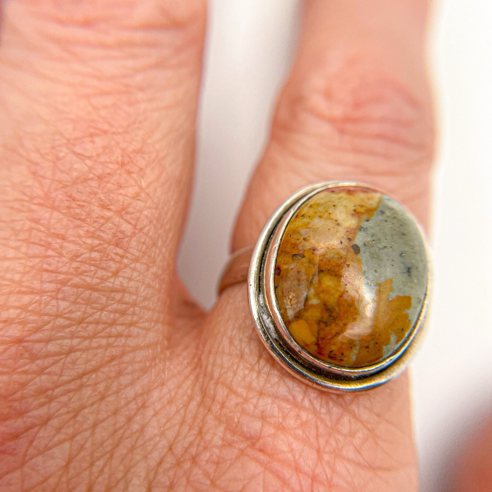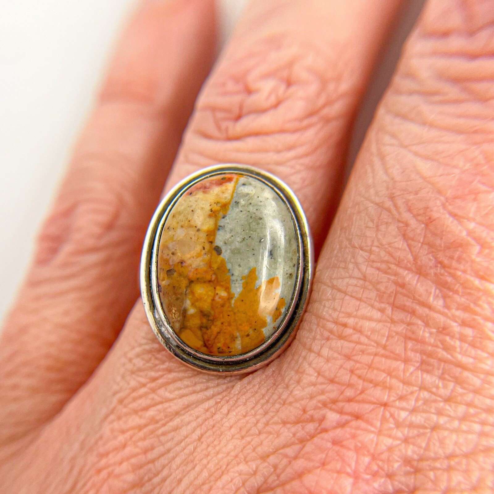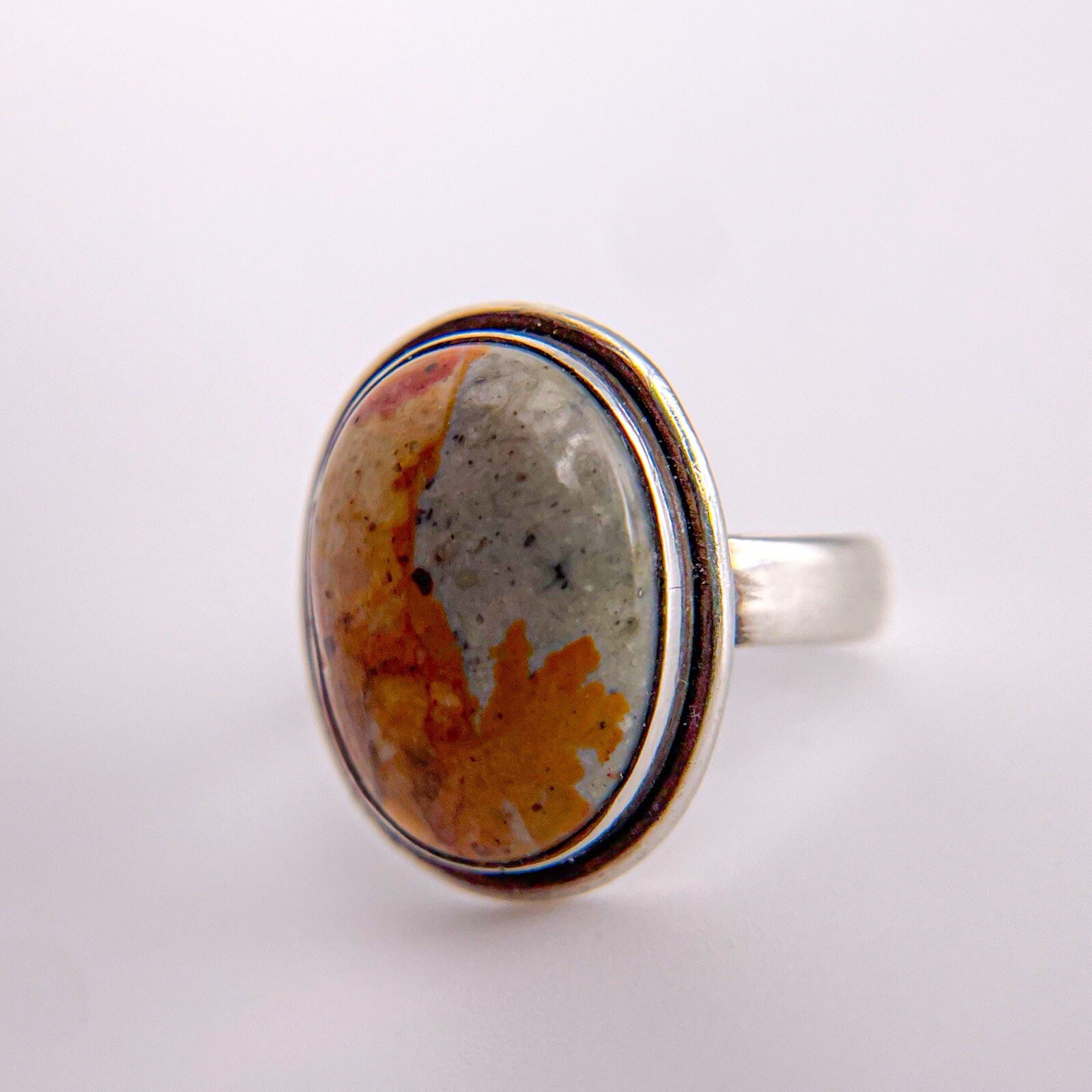 Sterling Silver 925 Jasper Oval Handmade Bezel Set Cabochon Ring. Size 7.