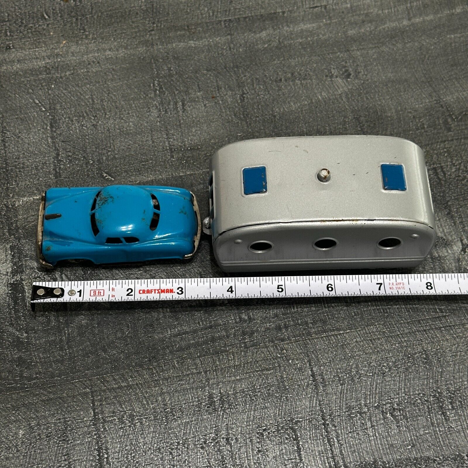 Vintage Blue Car Travel Trailer Camper SSS Toys Japan 50's