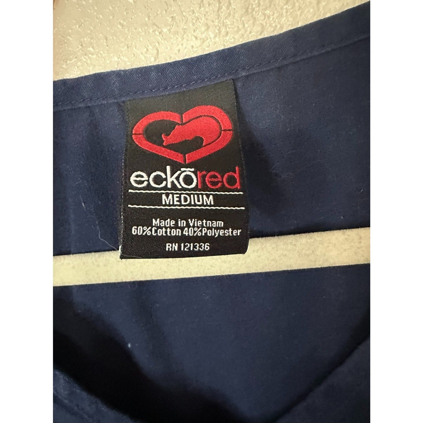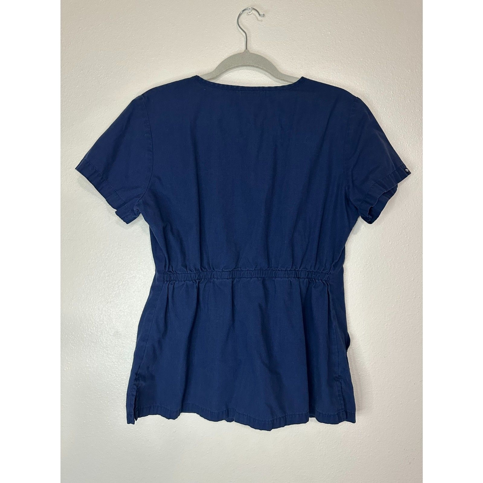 как выглядит EckoRed Womens Brandy V-Neck Back Elastic Scrub Shirt Navy Blue Size M фото