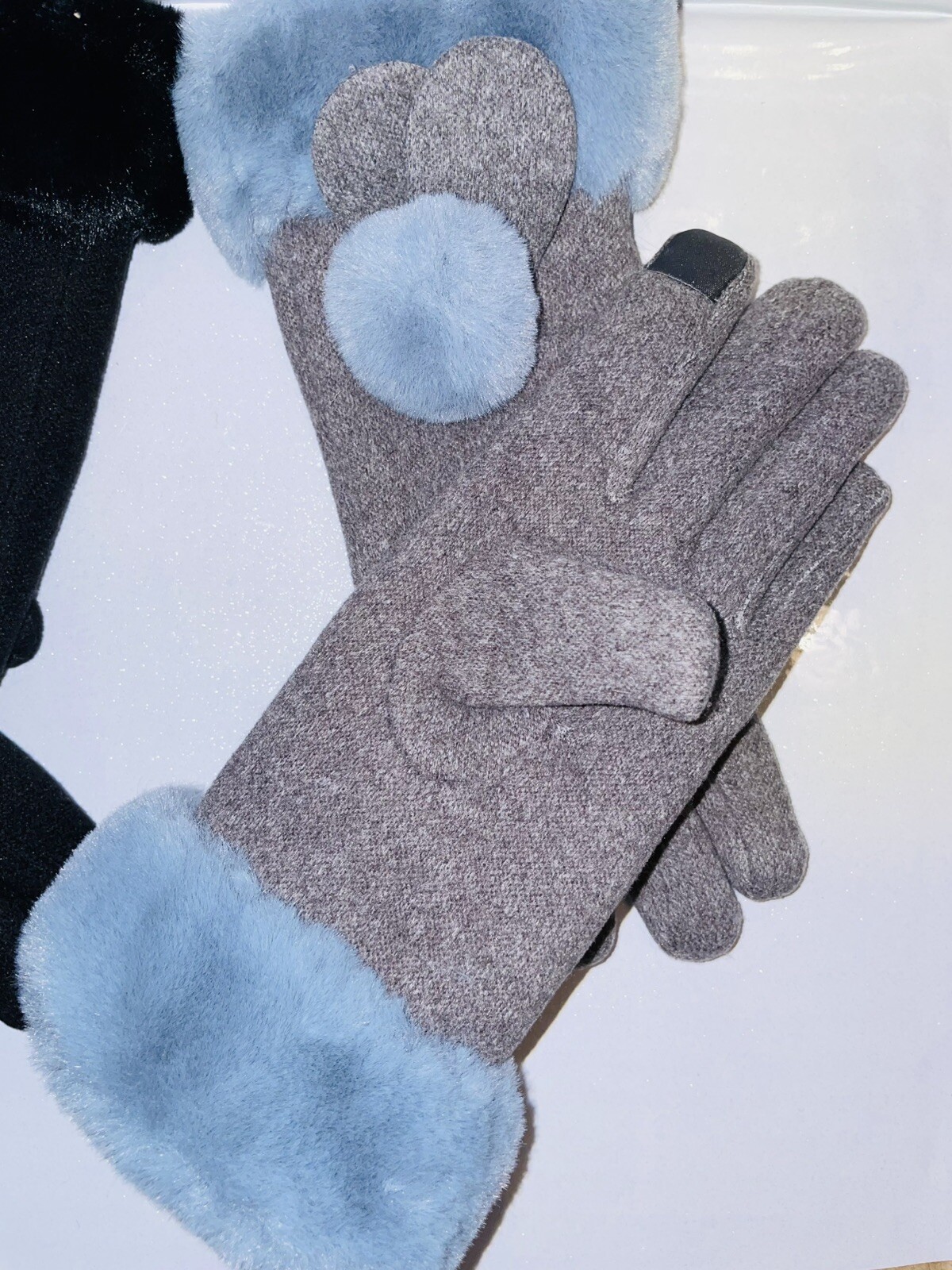 как выглядит Gloves Girls Fleece Black Grey Two Pairs NEW Warm Elegant Cute Age 6-12 фото