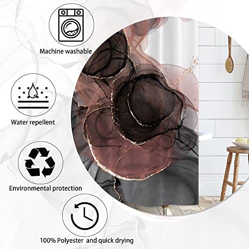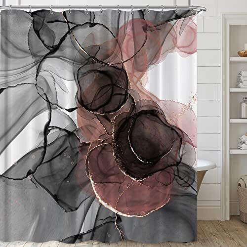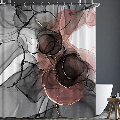 Pink Marble Abstract Shower Curtain Rose Gold Black Luxury Ombre Shower