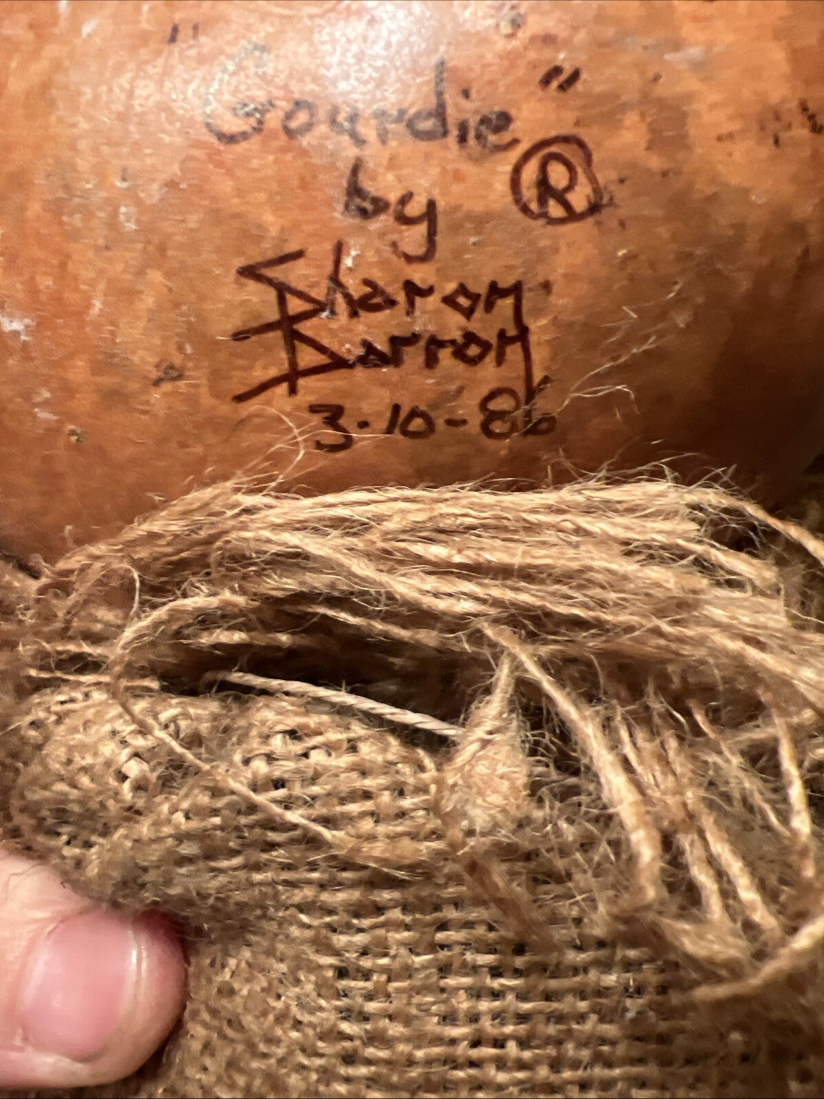 Folk Art Vintage Sharon Barron Hand Painted Gourdie Gourd Art 1986 Signed Orig