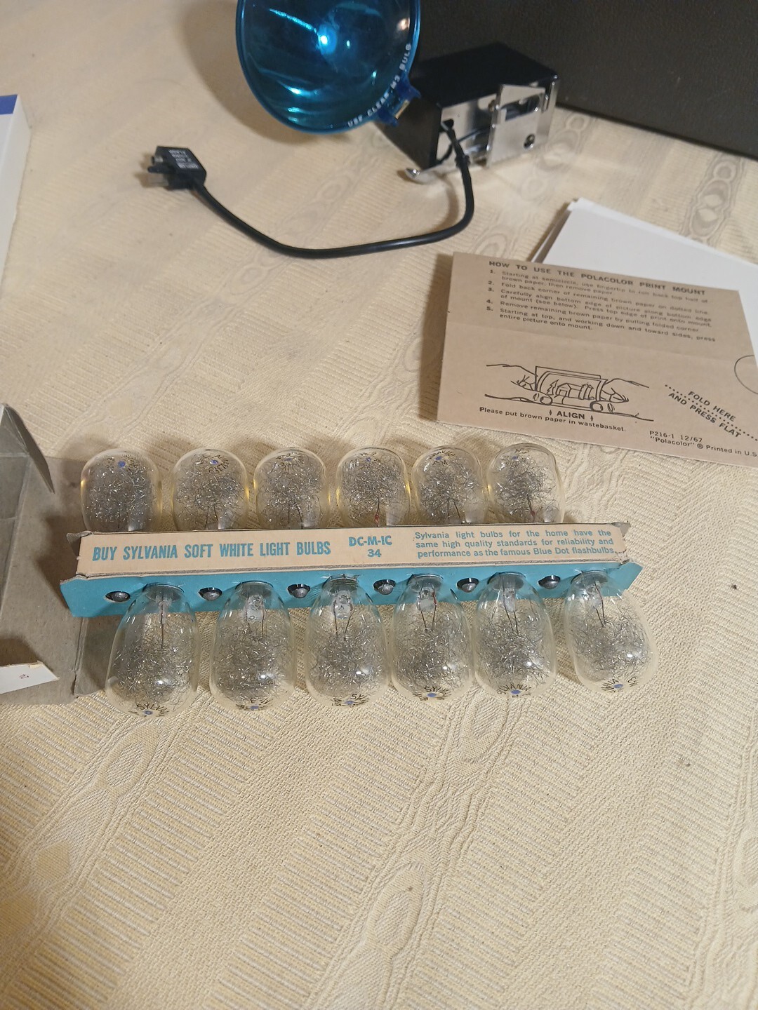 Vintage Polaroid Flash Bulb Unit Model 268, Film, M3 Bulbs, Polacolor Film Mount
