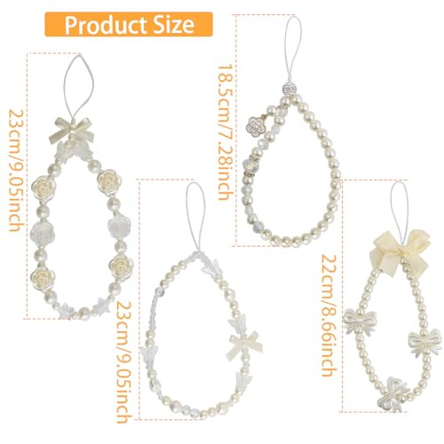 4pcs Beaded Phone Bracelet Straps White Cute Butterfly Bow Knot Flower Phones