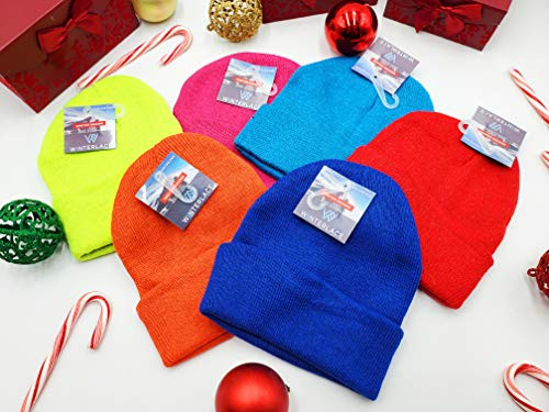 Kids Winter Beanies, 12 Pack Warm Cold Weather One Size Assorted Bright Colors